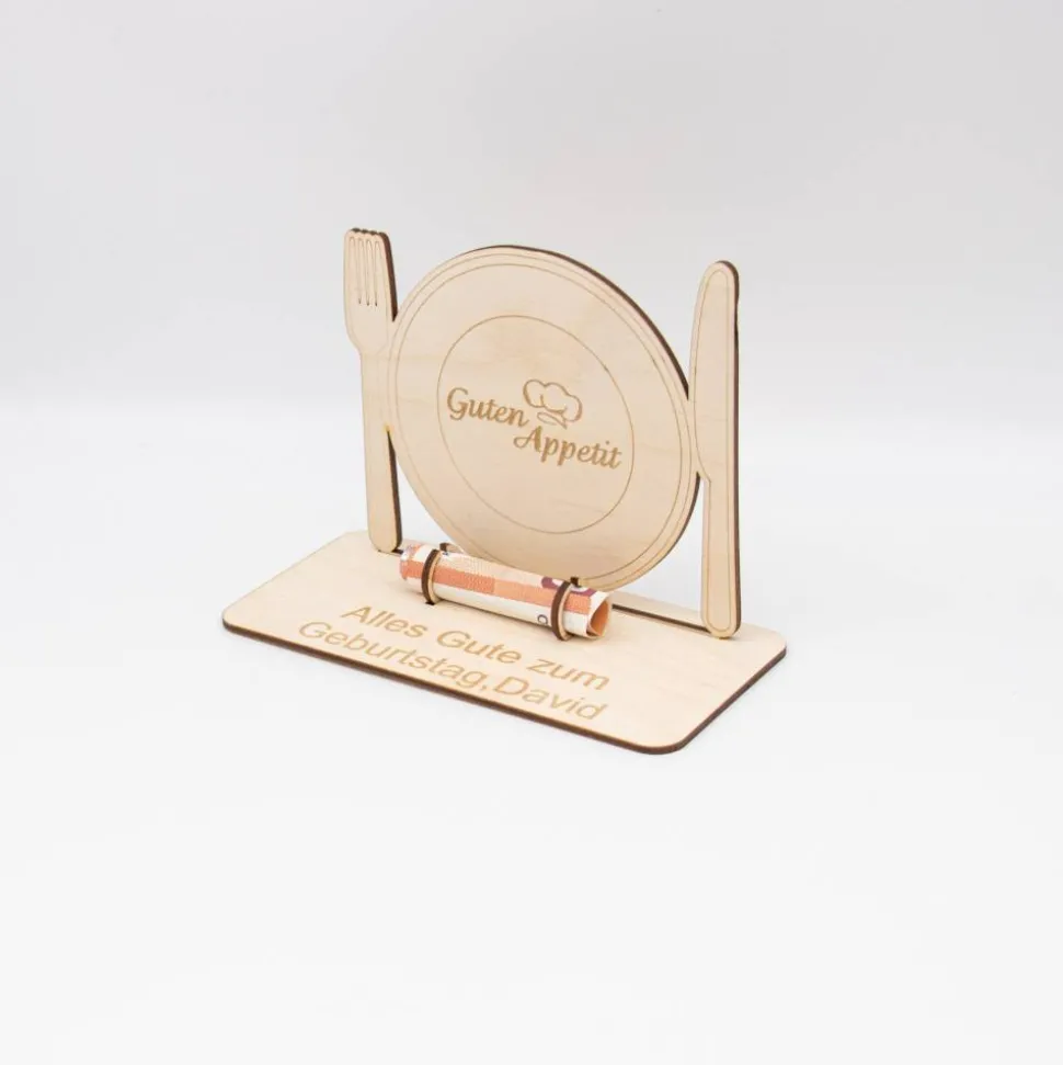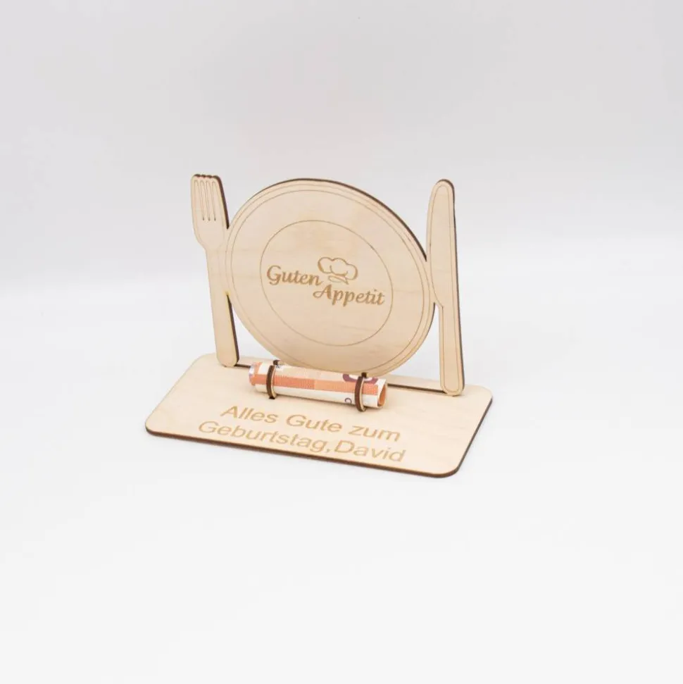 Ob für ein romantisches Dinner, ein gemütliches Familienessen oder als elegantes Geldgeschenk – dieser Halter fügt Ihrem Präsent eine persönliche und kreative Note hinzu. Durch die natürliche Maserung des Birkenholzes wird jedes Stück zu einem Unikat.