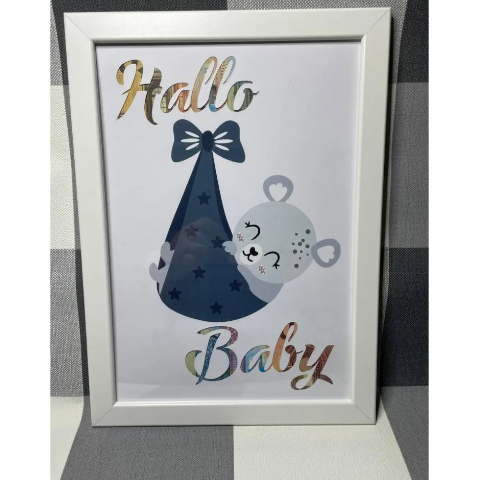 Geldgeschenk Bilderrahmen Geburt Bär personalisierbar DIN A4