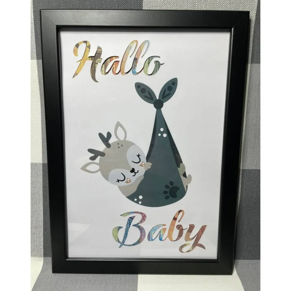 Geldgeschenk Bilderrahmen Geburt Hirsch personalisierbar DIN A4