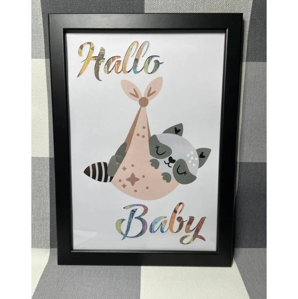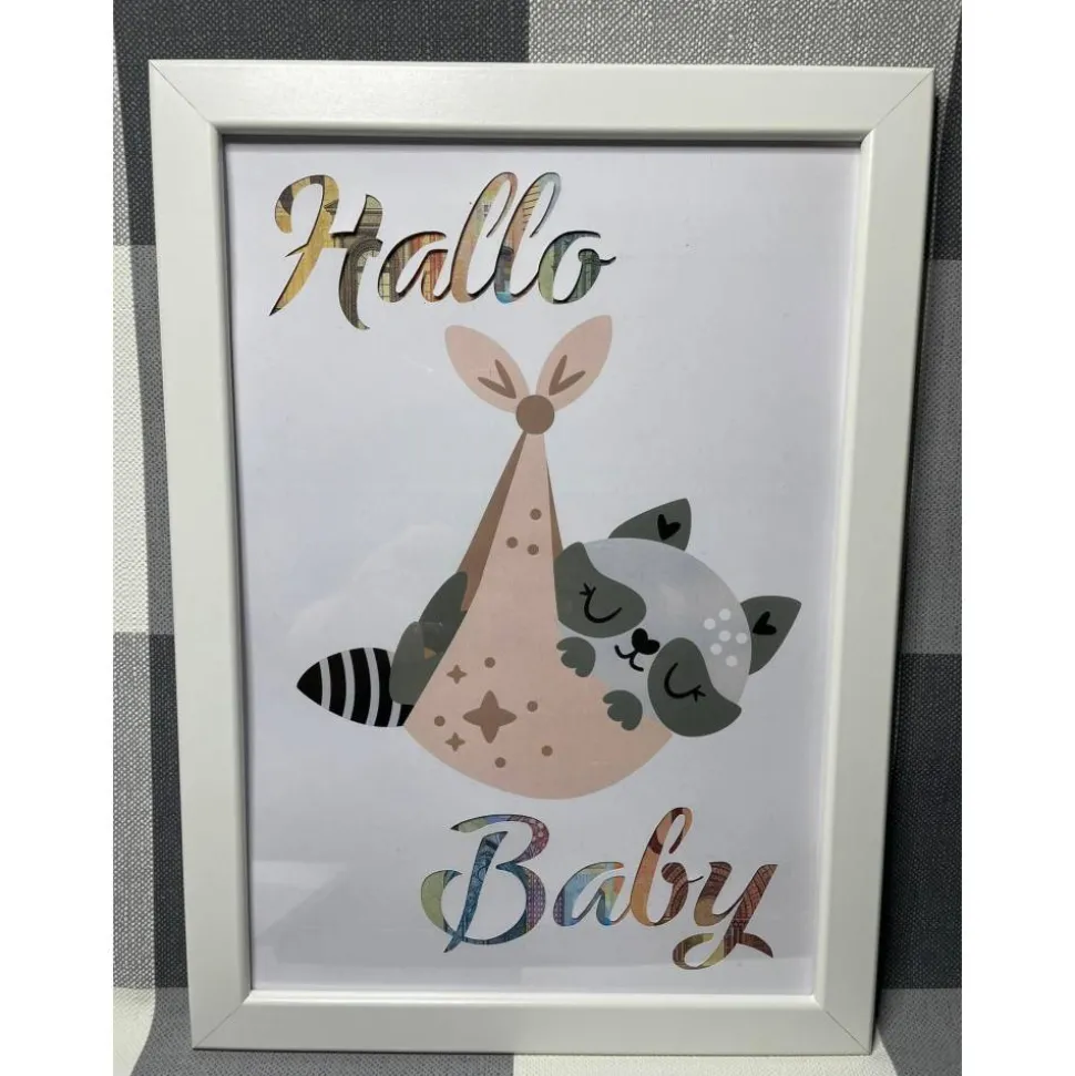 Geldgeschenk Bilderrahmen Geburt Waschbär personalisierbar DIN A4