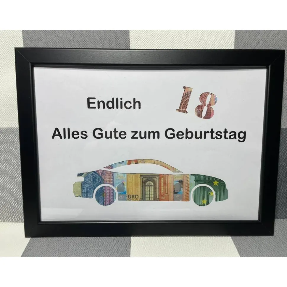 Geldgeschenk Bilderrahmen Geburtstag 18 Auto personalisierbar DIN A4