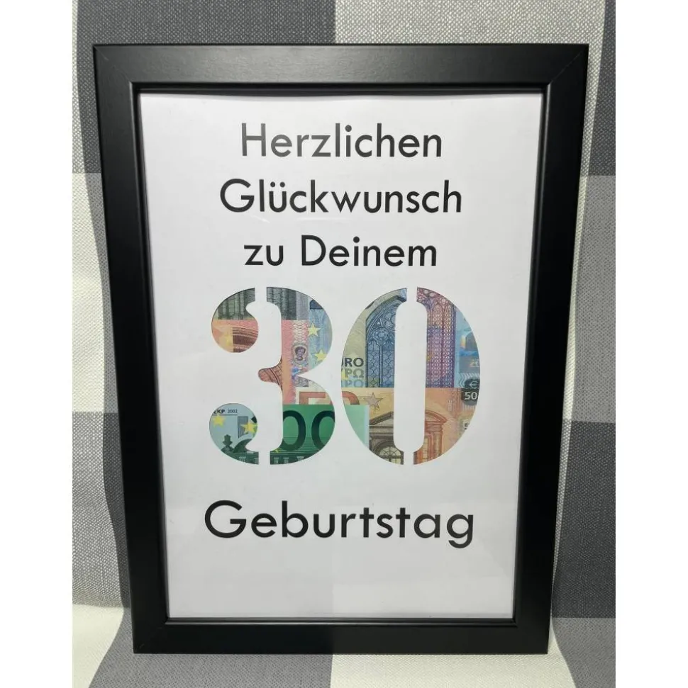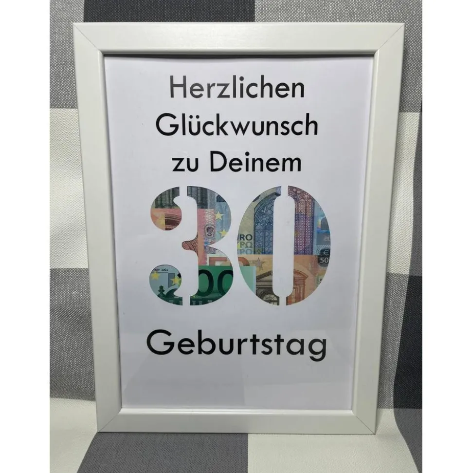 Geldgeschenk Bilderrahmen Geburtstag 30 personalisierbar DIN A4
