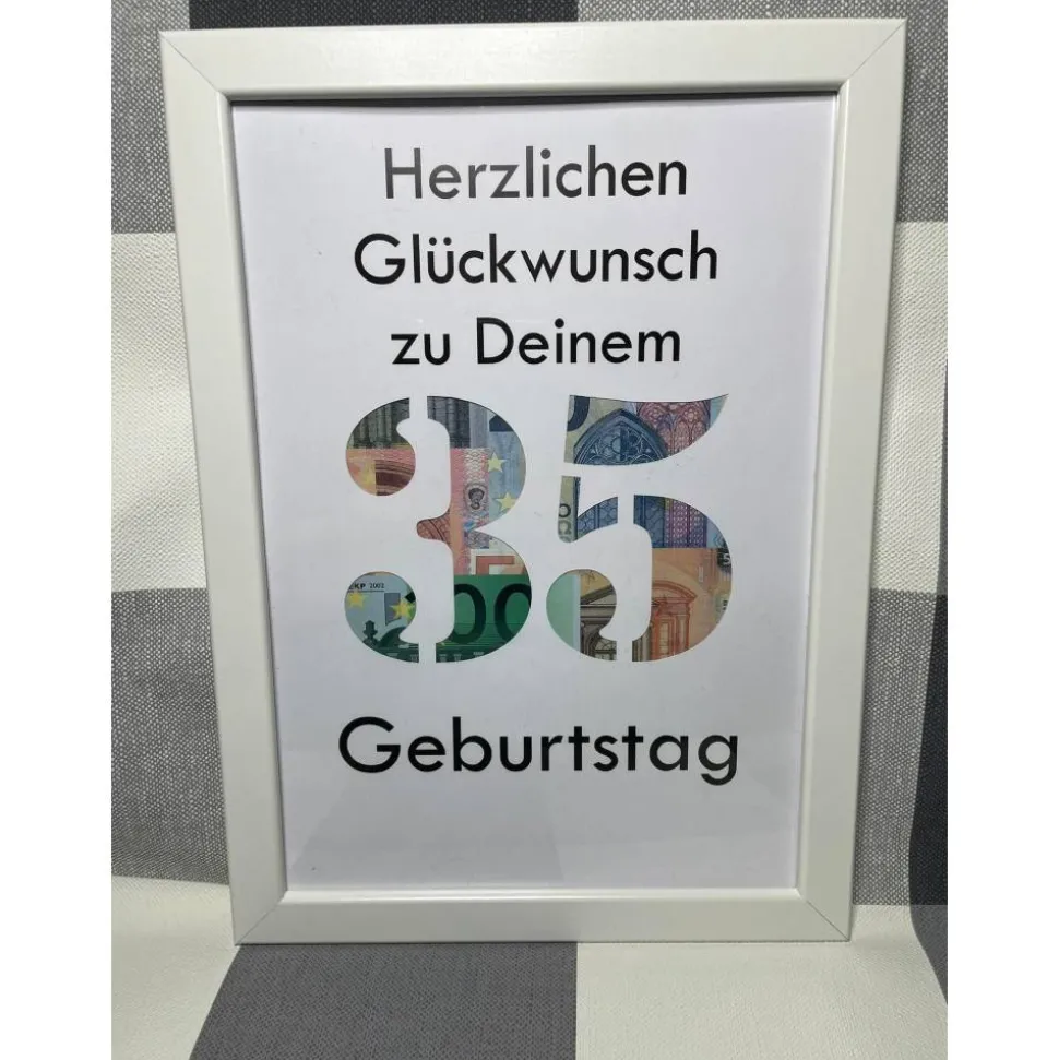 Geldgeschenk Bilderrahmen Geburtstag 35 personalisierbar DIN A4