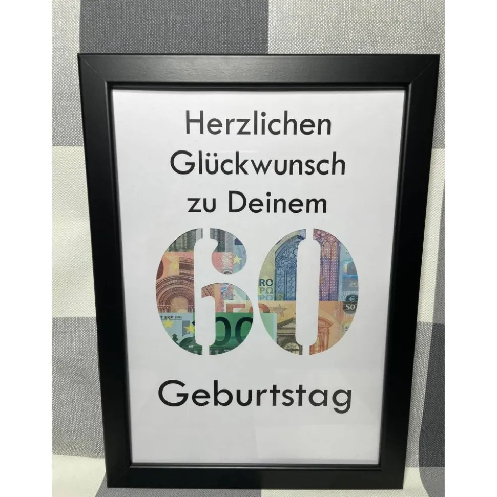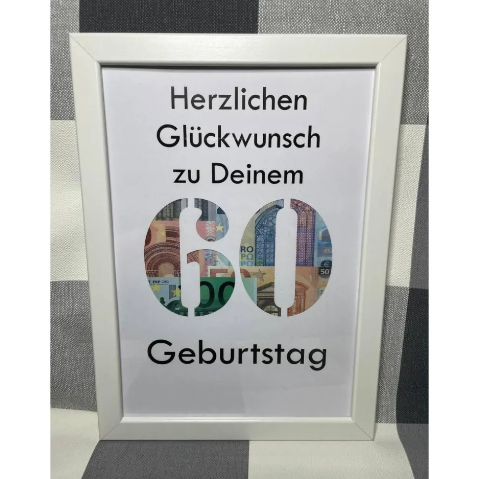 Damit der Bilderrahmen auch später ein origineller Hingucker bleibt, wird ein Blatt mit Mustergeld mitgeliefert.