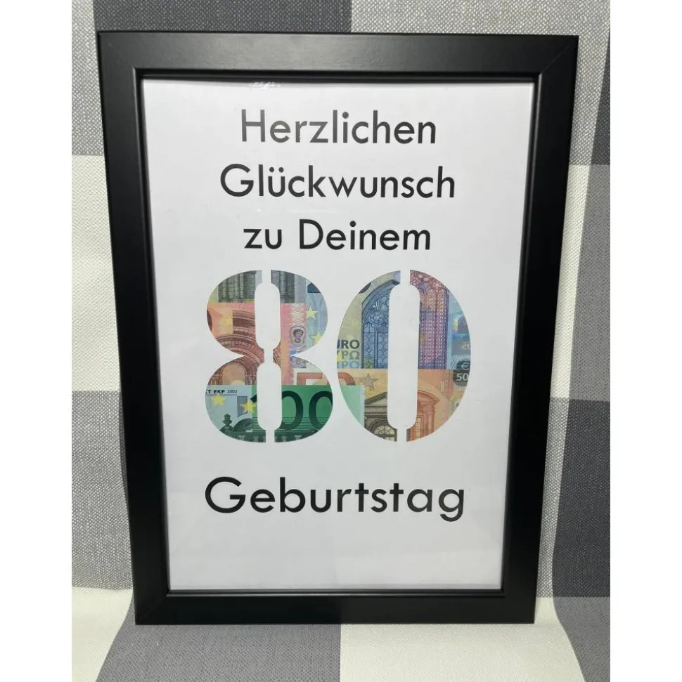 Damit der Bilderrahmen auch später ein origineller Hingucker bleibt, wird ein Blatt mit Mustergeld mitgeliefert.