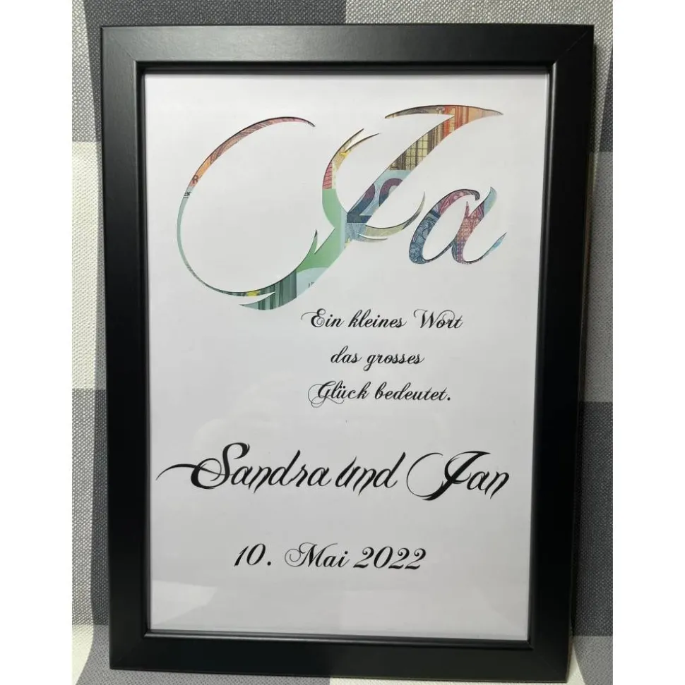 Geldgeschenk Bilderrahmen Hochzeit Ja personalisierbar DIN A4