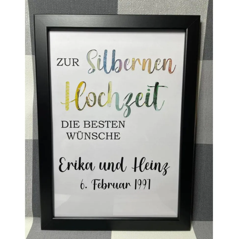 Geldgeschenk Bilderrahmen Silberne Hochzeit personalisierbar DIN A4