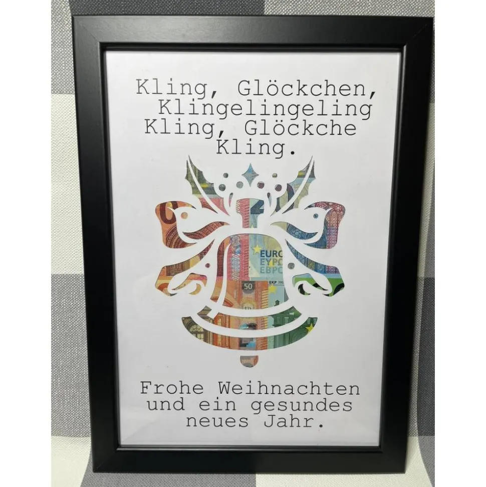 Geldgeschenk Bilderrahmen Weihnachten Glocke personalisierbar DIN A4
