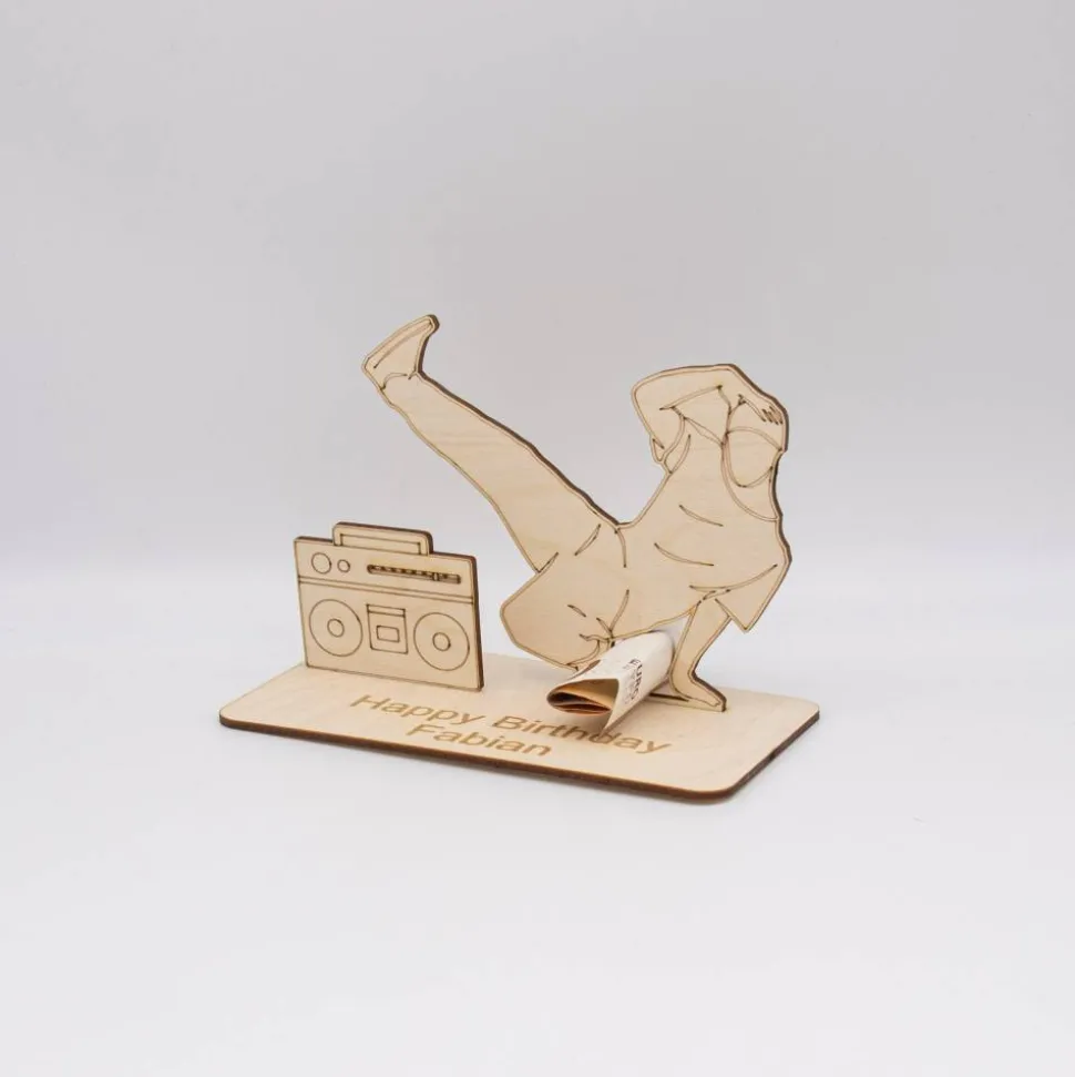 Geldgeschenk Breakdance – aus Holz personalisiert