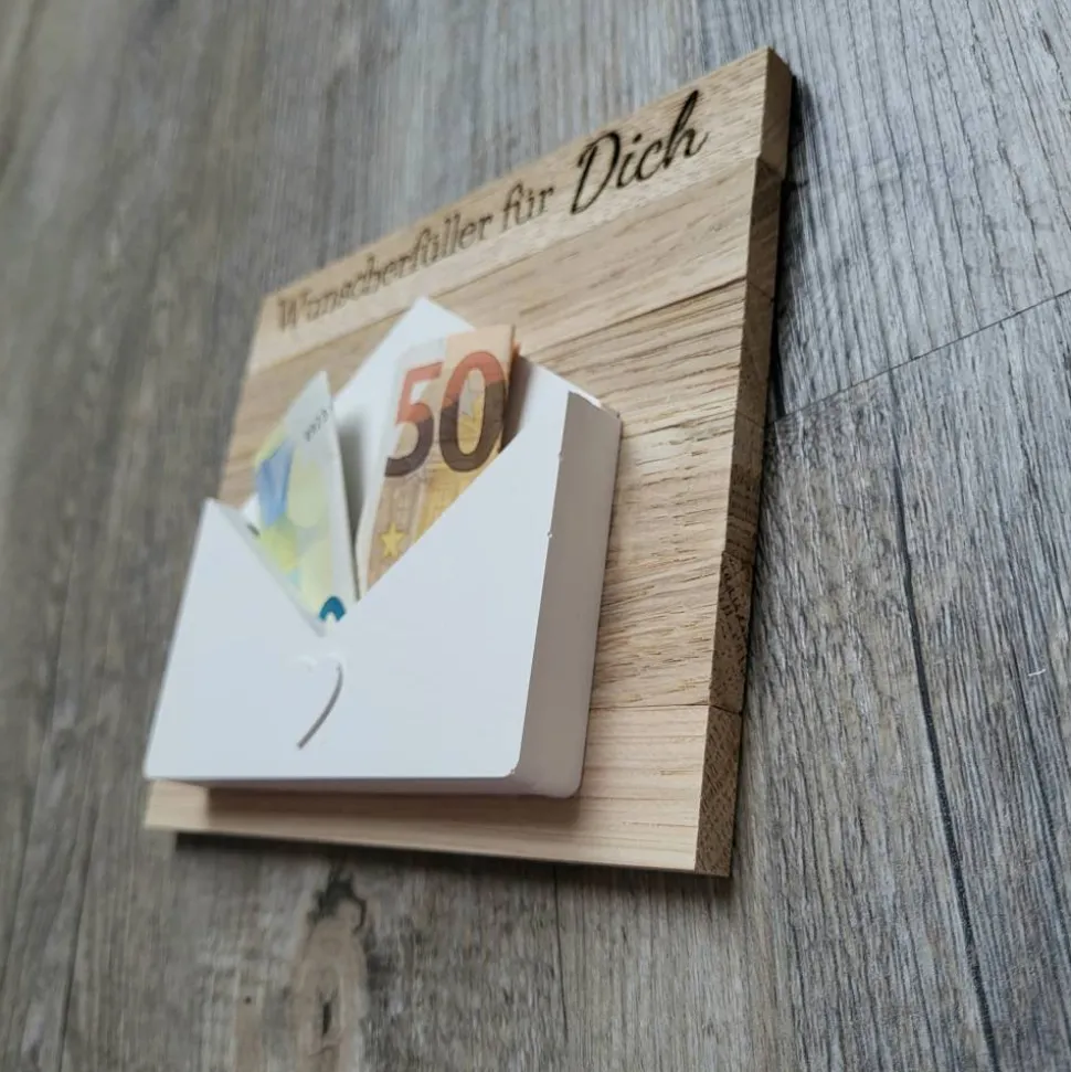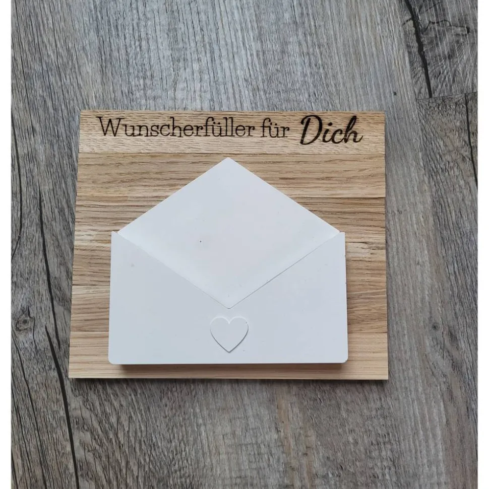 Dann ist dieser schlichte Briefumschlag im edlen weiß auf Holz genau das richtige für euch! Es passen Geldscheine oder Gutscheine im Scheckkarten-Format in den Umschlag.
