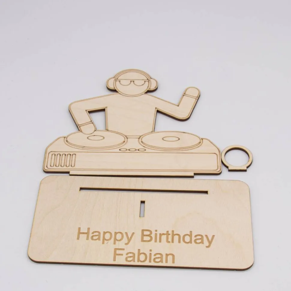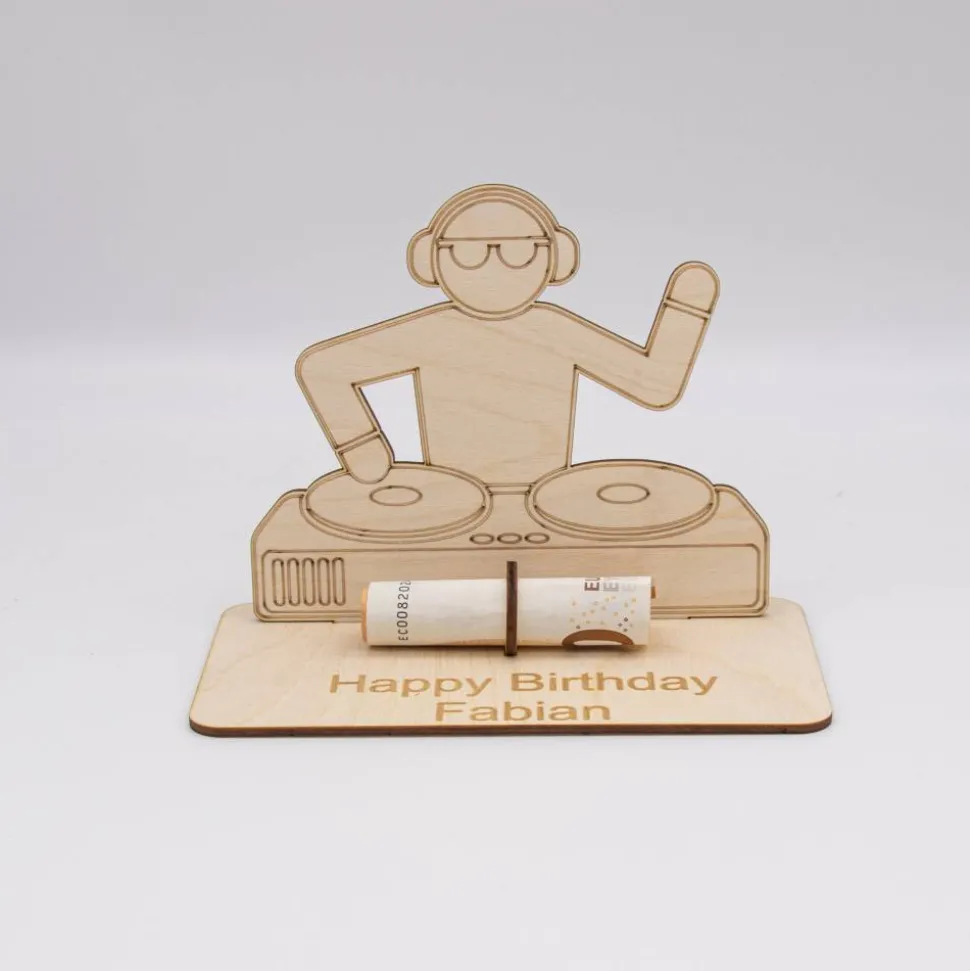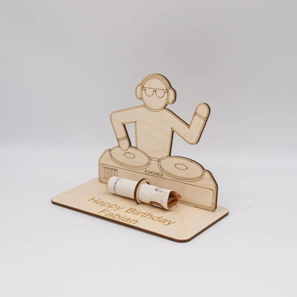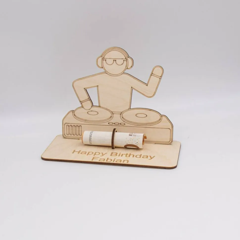 Geldgeschenk DJ – aus Holz personalisiert