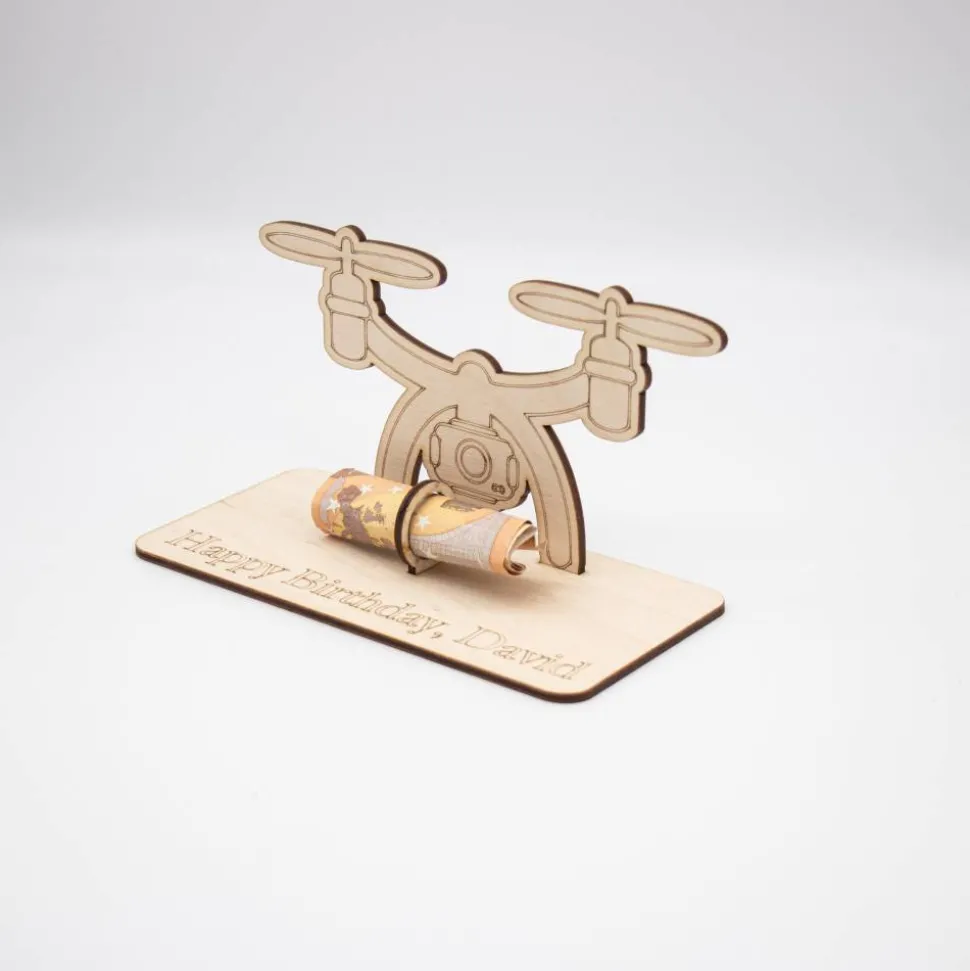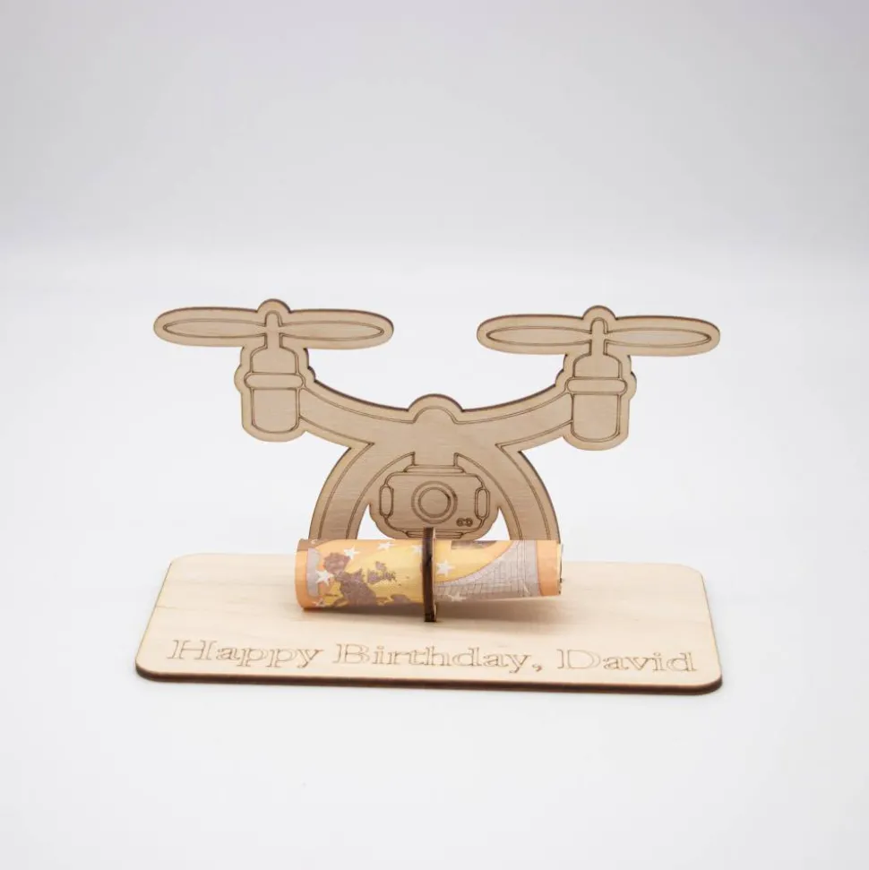 Unser Geldgeschenk aus 3 mm Birkensperrholz bietet nicht nur eine stilvolle Präsentation für Geldscheine, sondern kann auch als dekoratives Element in jedem Zuhause dienen. Es kann an der Wand aufgehängt oder auf einem Regal platziert werden, um eine wunderbare Erinnerung an den besonderen Anlass zu schaffen.