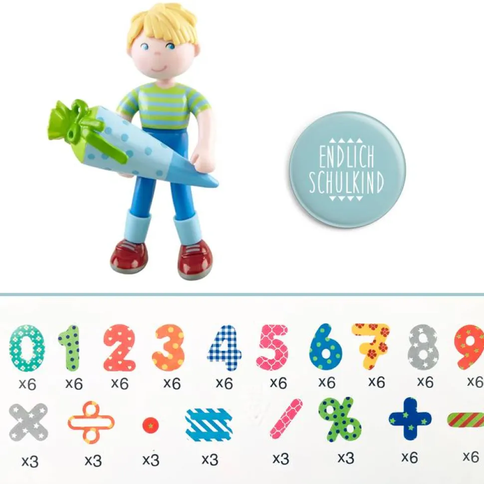 1 Little Friends Figur Sebastian mit Schultüte, 9.5 cm hoch, zum Spielen oder als Deko beim Einschulungsfoto