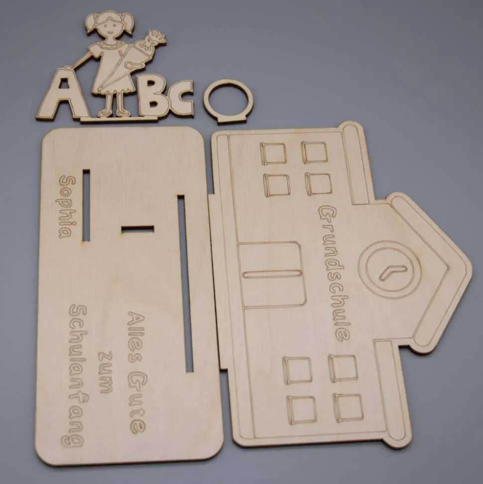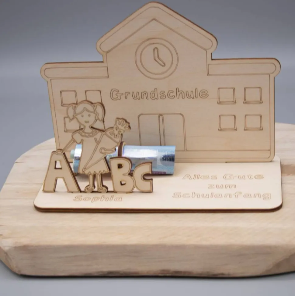 Dieses einzigartige Geldgeschenk zum Schulstart ist die perfekte Möglichkeit, den Übergang Ihres Kindes in die Schule zu feiern. Es wird nicht nur eine dauerhafte Erinnerung an diesen besonderen Tag sein, sondern kann auch als Dekorationsstück in ihrem Zimmer dienen. Die natürliche Holztextur und das detaillierte Design fügen sich nahtlos in jede Raumdekoration ein.