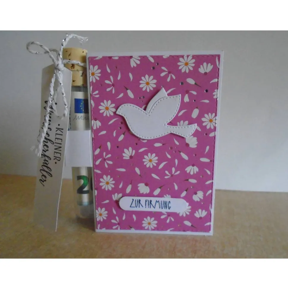 dieses hübsche Geldgeschenk zur Firmung für ein Mädchen wird mit einen Reagenzglas verschickt…