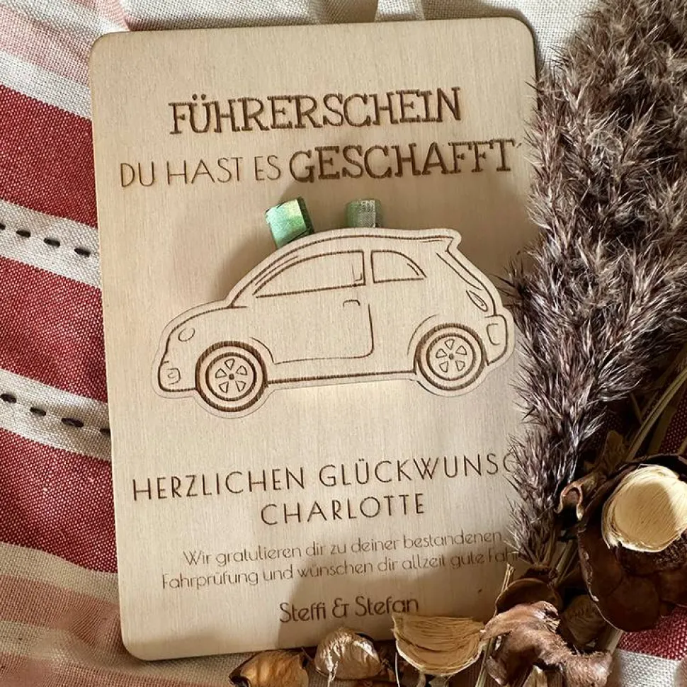 Die Holzkarte ist eine wunderschöne Möglichkeit Geldscheine zu überreichen und eine einzigartige Erinnerung für den Beschenkten.