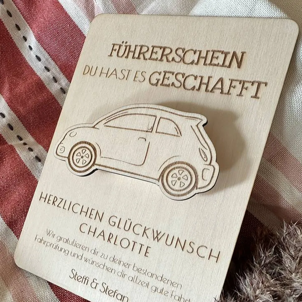 Mit dem hervorgehoben Motiv eines Autos ist die Karte ein absoluter Hingucker und durch den Namen ein ganz besonderes persönliches Geschenk.