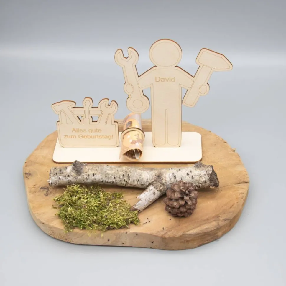 Geldgeschenk für Handwerker 1 – aus Holz personalisiert