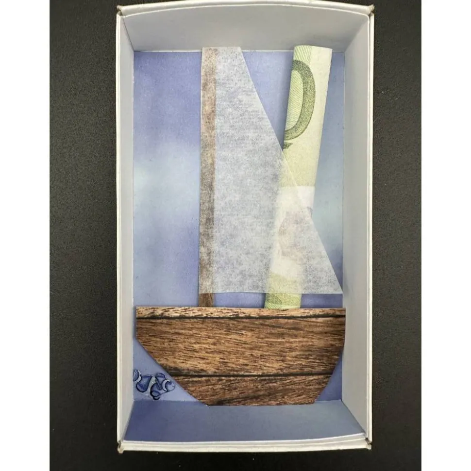 Sie müssen nur noch den Geldschein einrollen, PLATT DRÜCKEN und ins Boot stecken.
