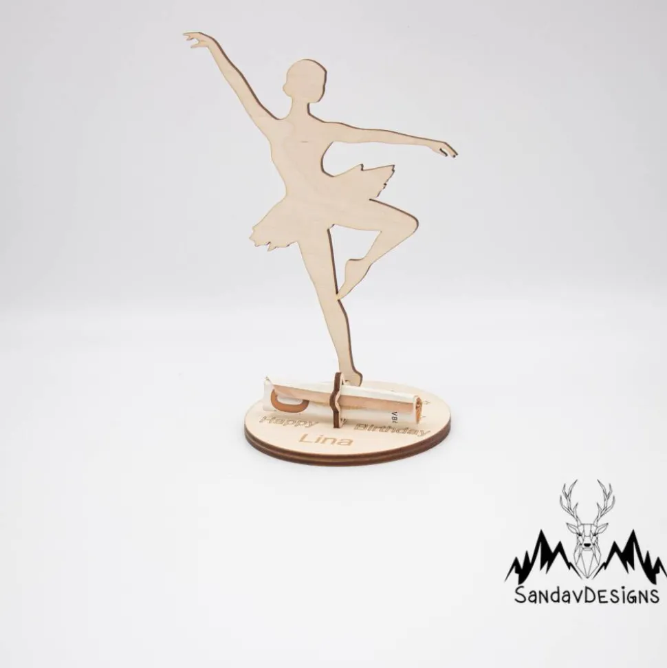 Geldgeschenk für Mädchen – Ballerina – aus Holz personalisiert