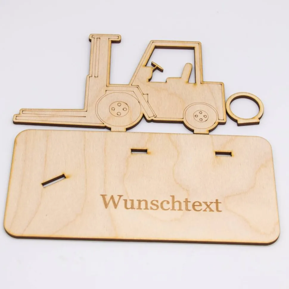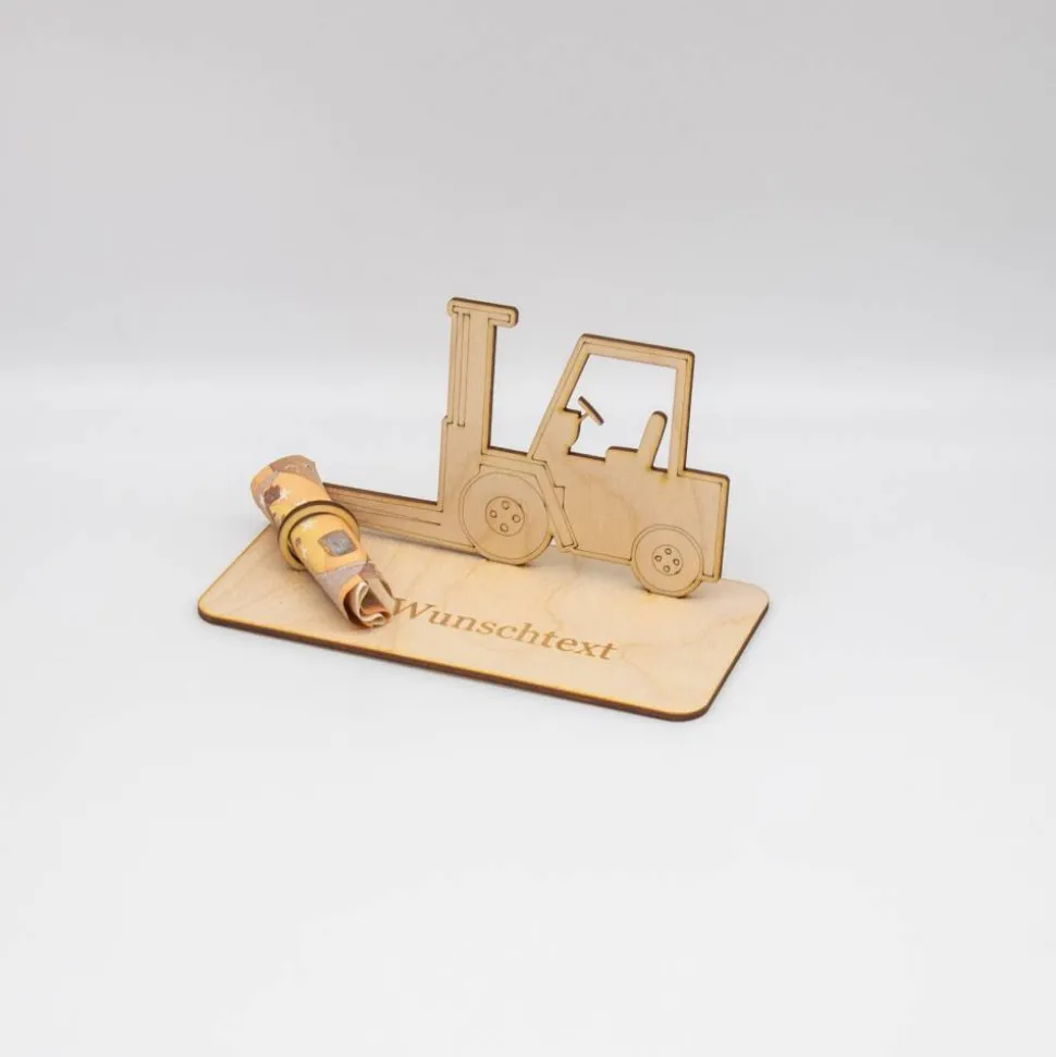 Geldgeschenk Gabelstabler – aus Holz personalisiert