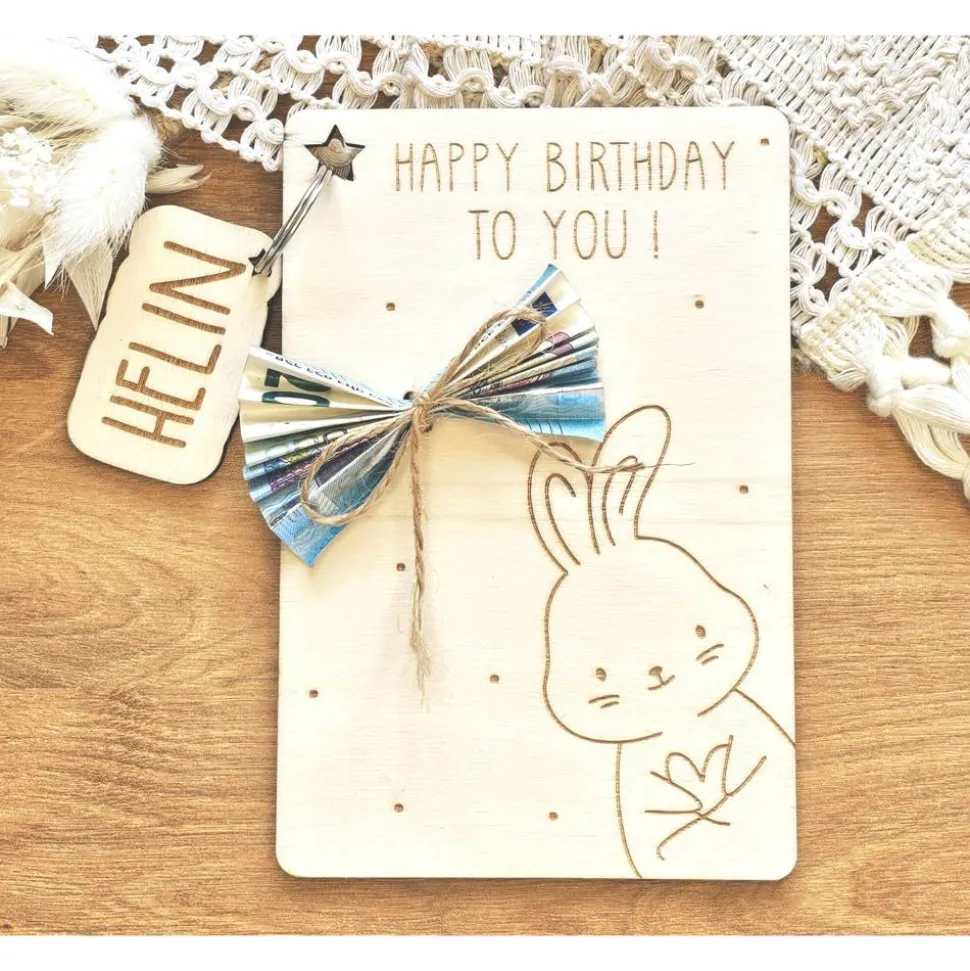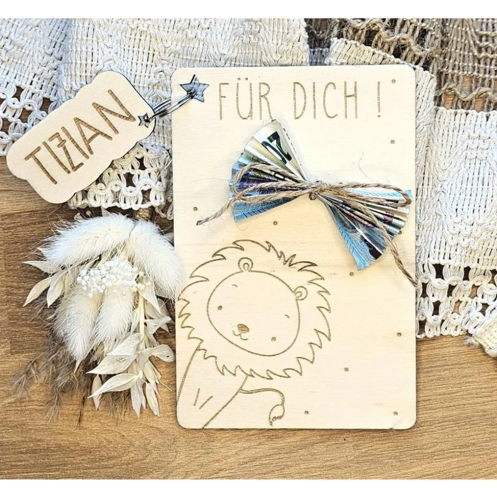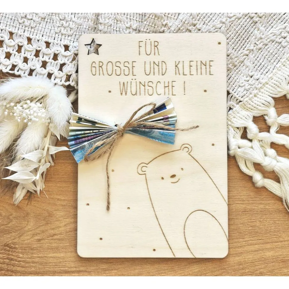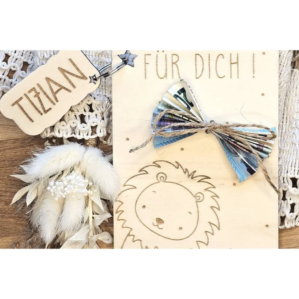 Die Karte aus Holz ist ein sehr persönliches Geburtsgeschenk.