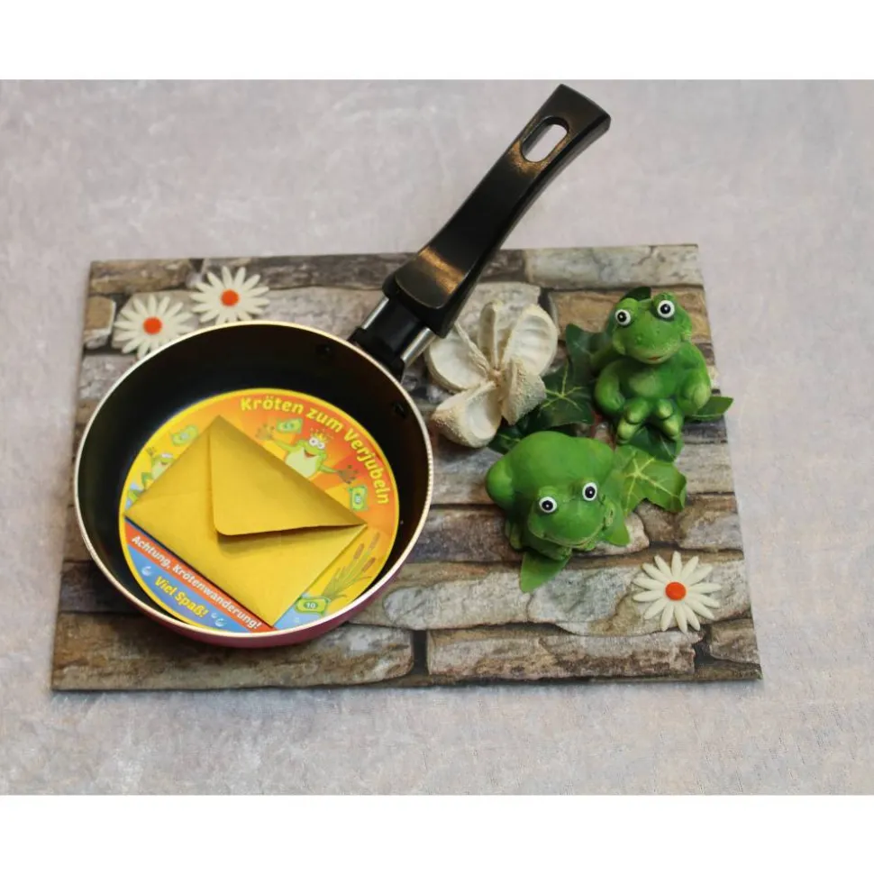 Das Geld wird in den Briefumschlag in der Pfanne gesteckt. Die Pfanne ist für alle Herdarten, außer Induktion, geeignet.