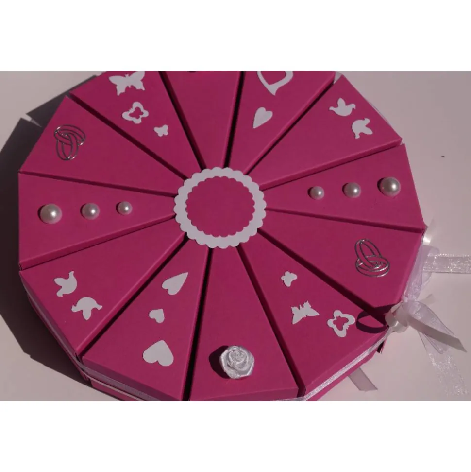 Sie ist mit einer Schleife zusammengebunden, einfach aufmachen und dann können die einzelnen Schachteln geöffnet werden.
