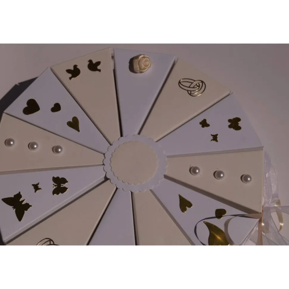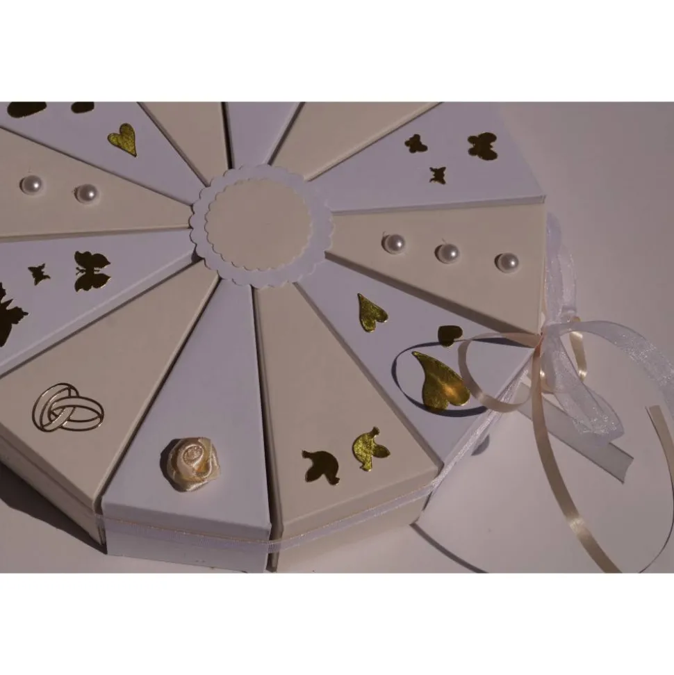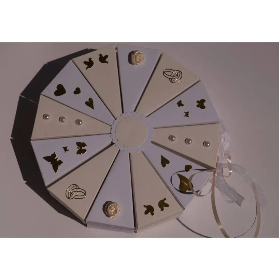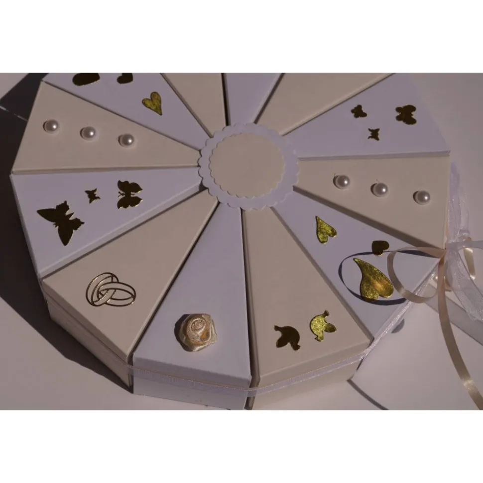 Sie ist mit einer Schleife zusammengebunden, einfach aufmachen und dann können die einzelnen Schachteln geöffnet werden. Ein tolles Geschenk für das Brautpaar.