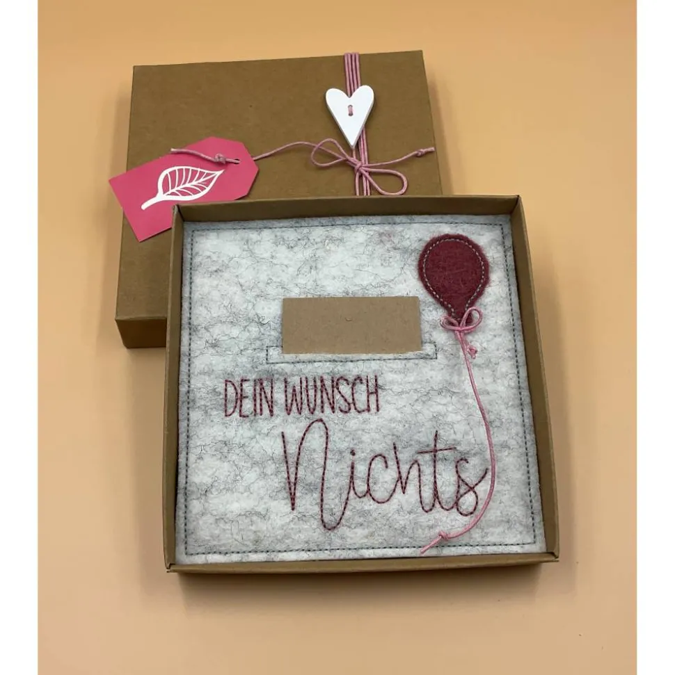 Die bestickte Filzkarte mit Einschub für Geld oder eine Botschaft, oder Beides! eignet sich besonders für Menschen die keinen speziellen Wunsch geäußert haben,