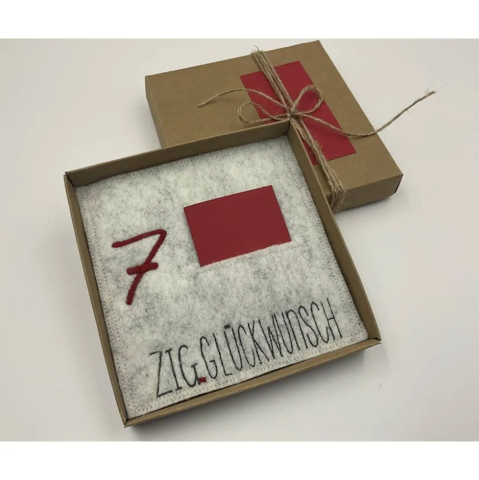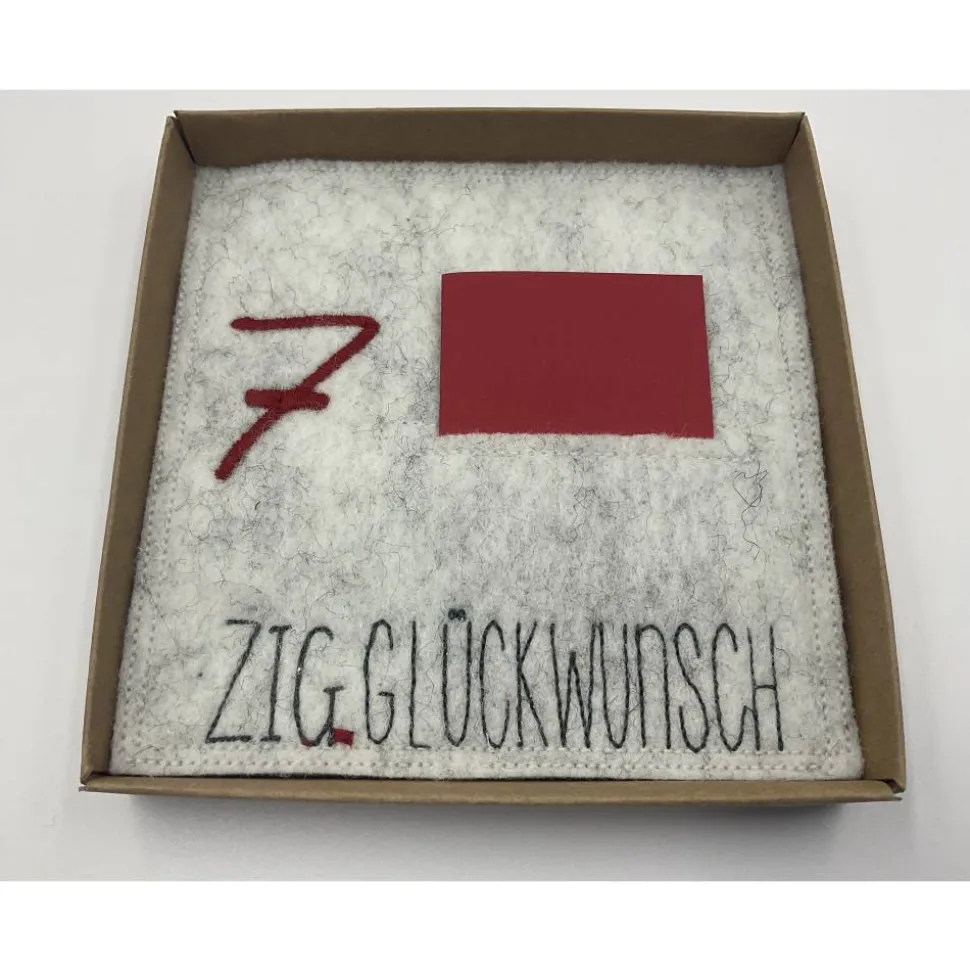 Im Inneren eine bestickte Filzkarte mit seitlichem Einschub für Geld oder eine Botschaft, oder Beides!