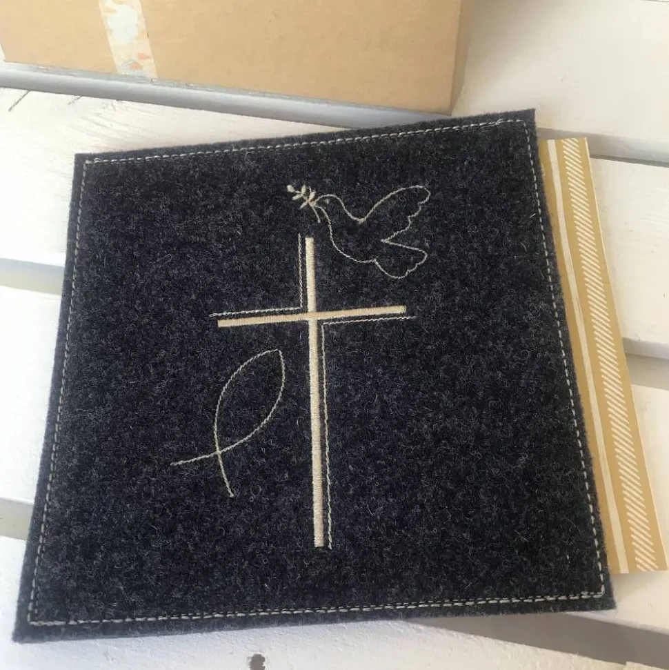 Das Motiv wird direkt auf das Filz aus 100% Wolle gestickt.