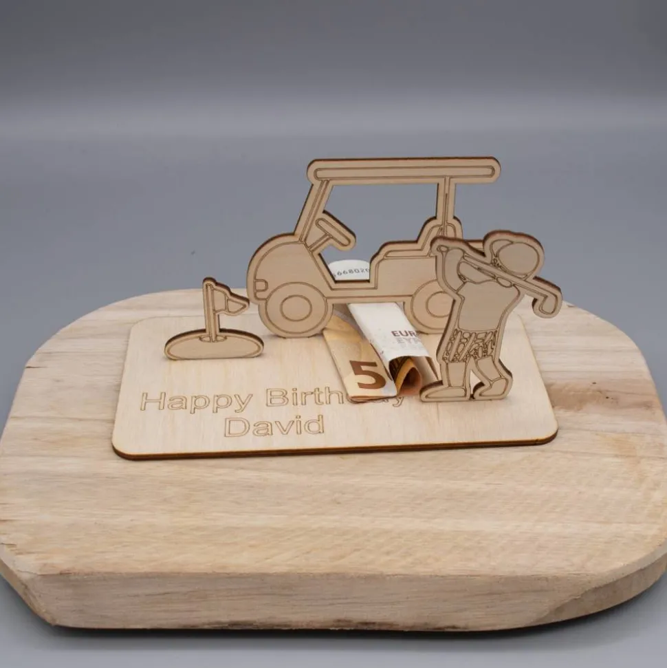 Bestellen Sie jetzt dieses einzigartige Geldgeschenk und überraschen Sie den Golf-Liebhaber in Ihrem Leben mit einem Geschenk, das sowohl in seiner Form als auch in seiner Bedeutung Bestand hat.
