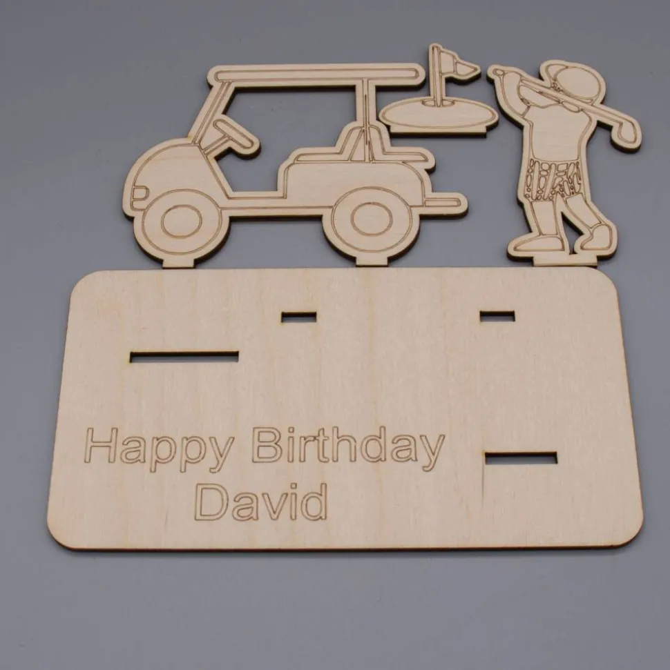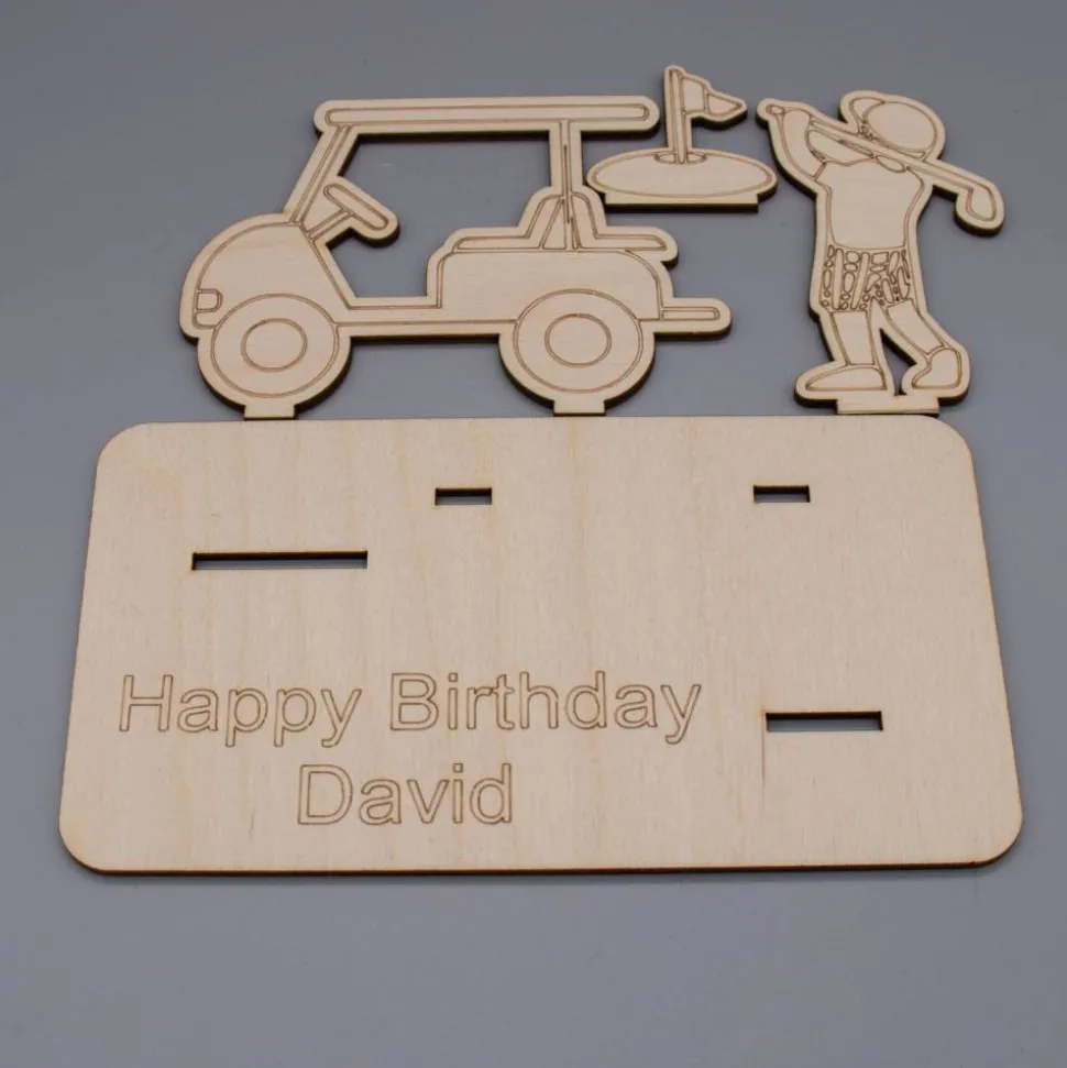 Motiv: Golfspieler, mit Laser ausgeschnitten und graviert