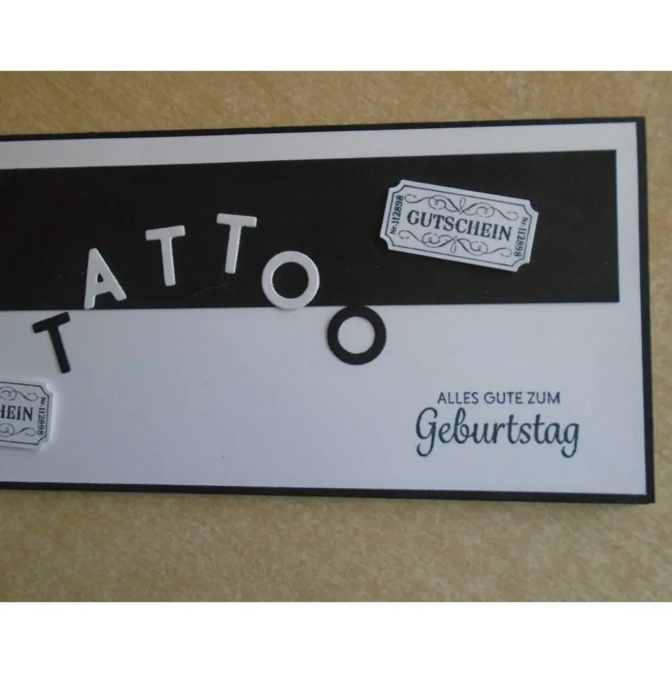 Verziert wurde dieses Gutscheinverpackung Geldgeschenk Geburtstagsverpackung Geburtstag mit einen stanzmotiv TATTOO …