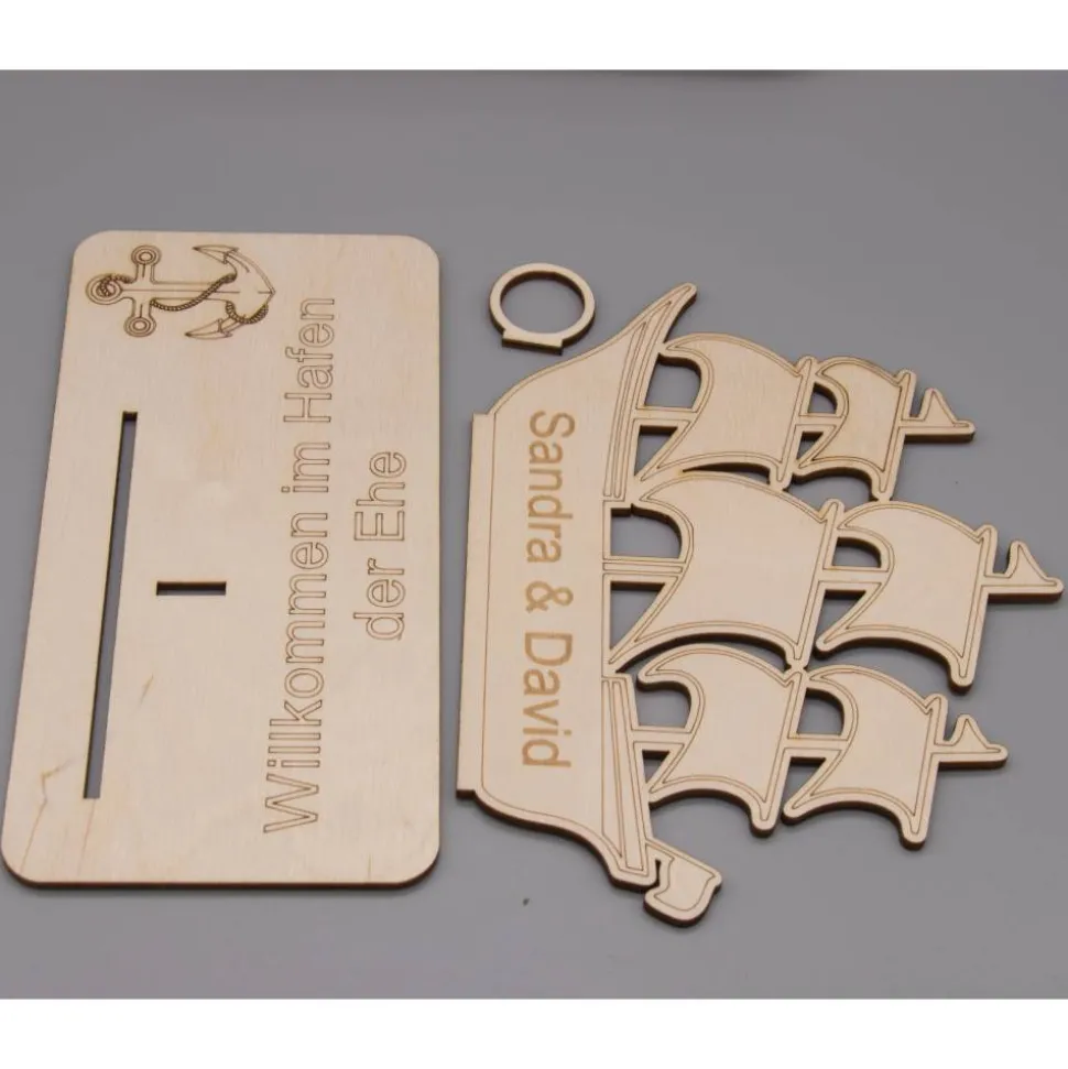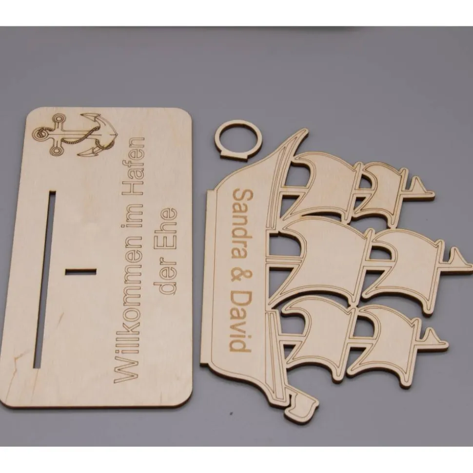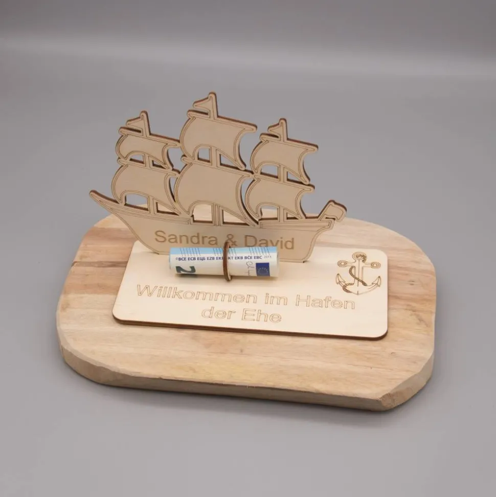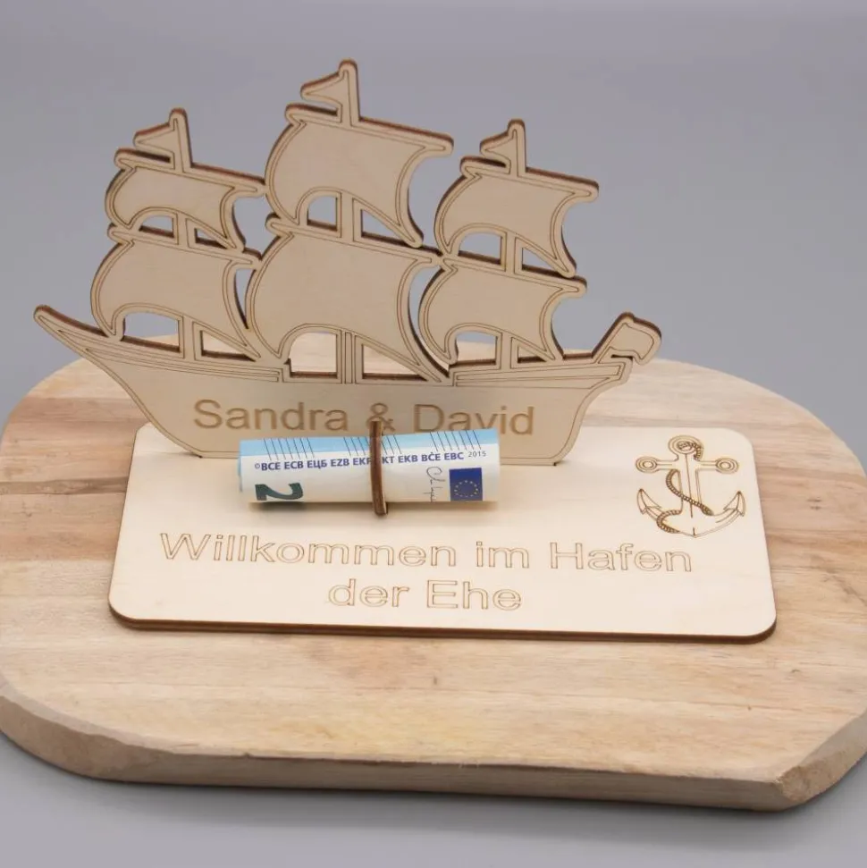 Geldgeschenk Hafen der Ehe – aus Holz personalisiert