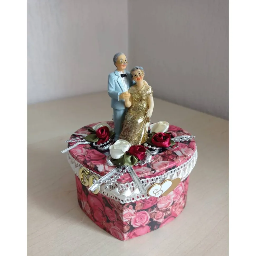 Du suchst nach einer besonderen Art, Geld zur Hochzeit oder zum 60. Hochzeitstag zu verschenken? Mit dieser liebevoll gestalteten Herzbox triffst du garantiert ins Schwarze! Anstatt Geld im Umschlag zu überreichen, setzt du mit dieser Szene ein echtes Highlight. Die Herzbox misst 11x 8,5 x 6 cm und ist mit zahlreichen Dekoelementen ausgestattet, die das Geschenk zu einem echten Blickfang machen.