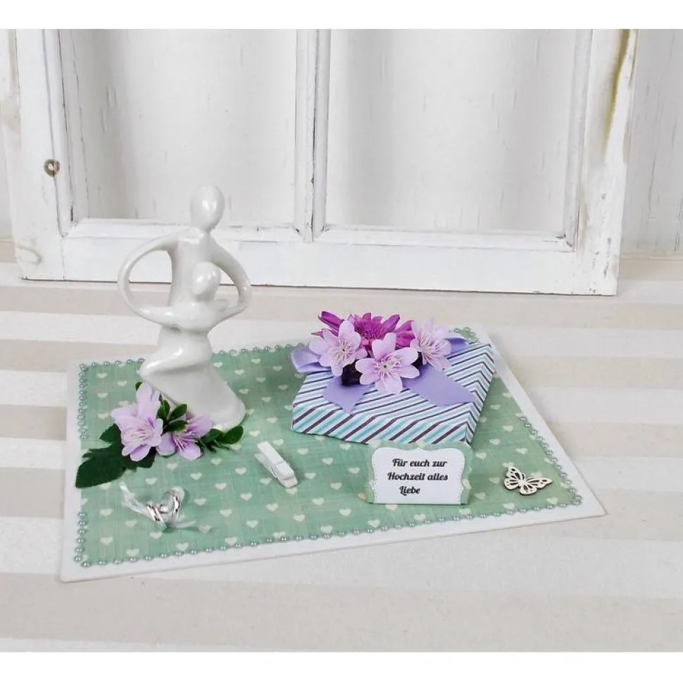 Material: Unterlage, Papier, Deko, Brautpaarfigur, Geldscheinklammer
