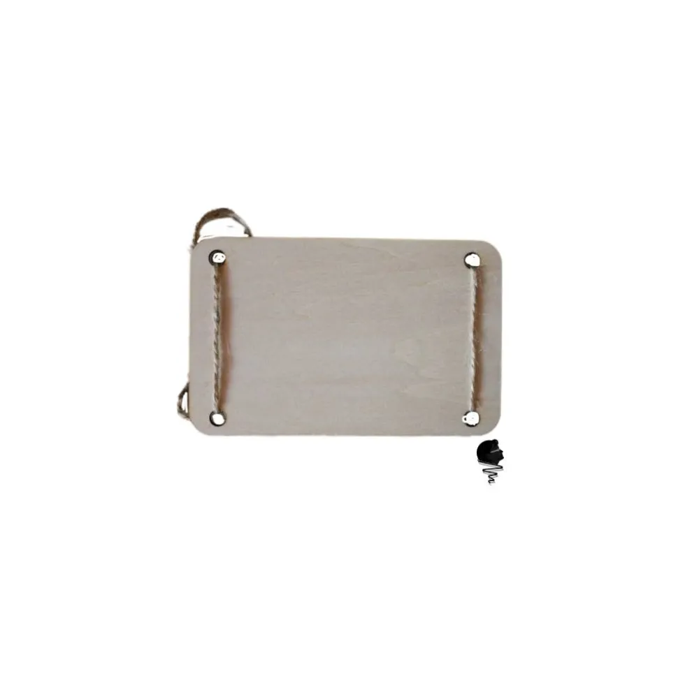 Beide Holzkarten sind mit jeweils vier Löchern versehen, um die Karten mit einem Band zusammen zu binden. Das Band ist natürlich im Lieferumfang enthalten.