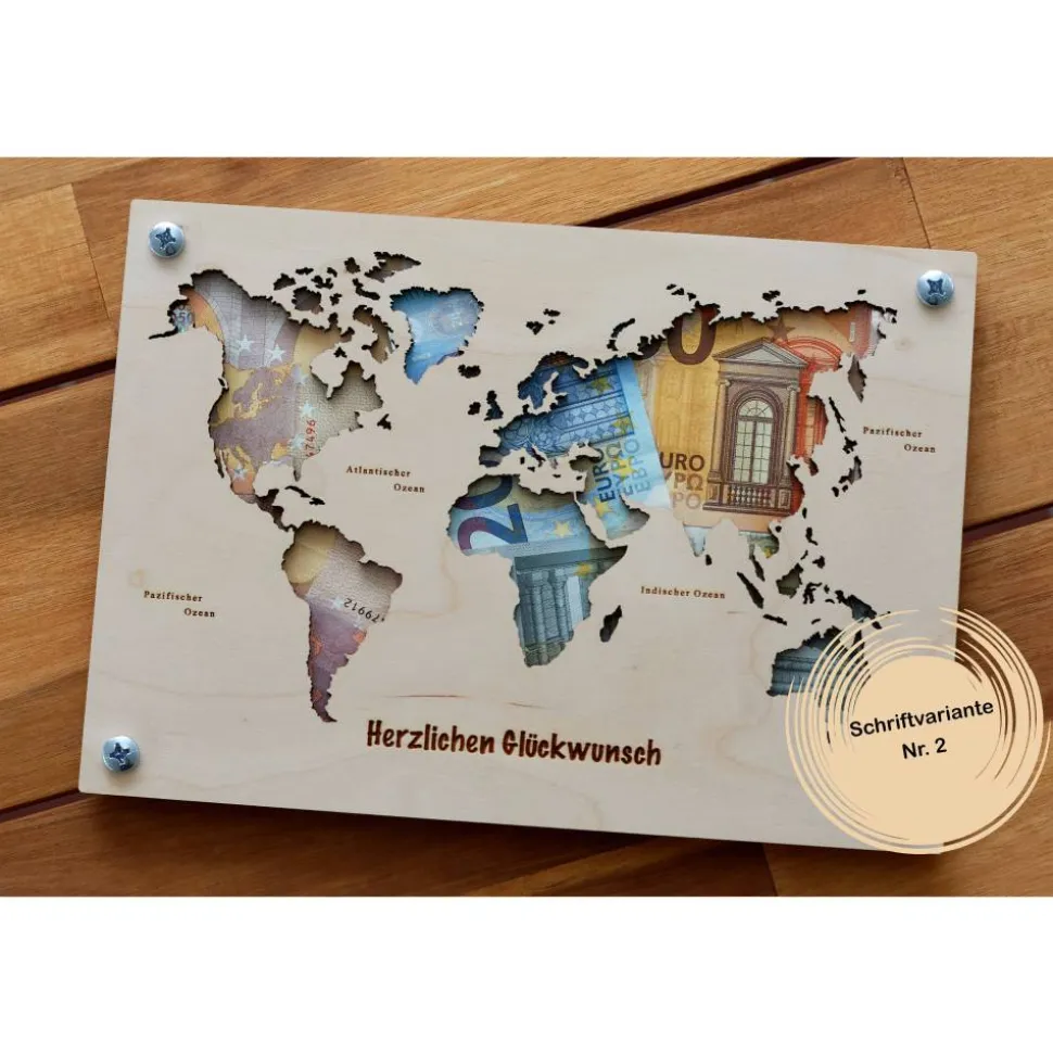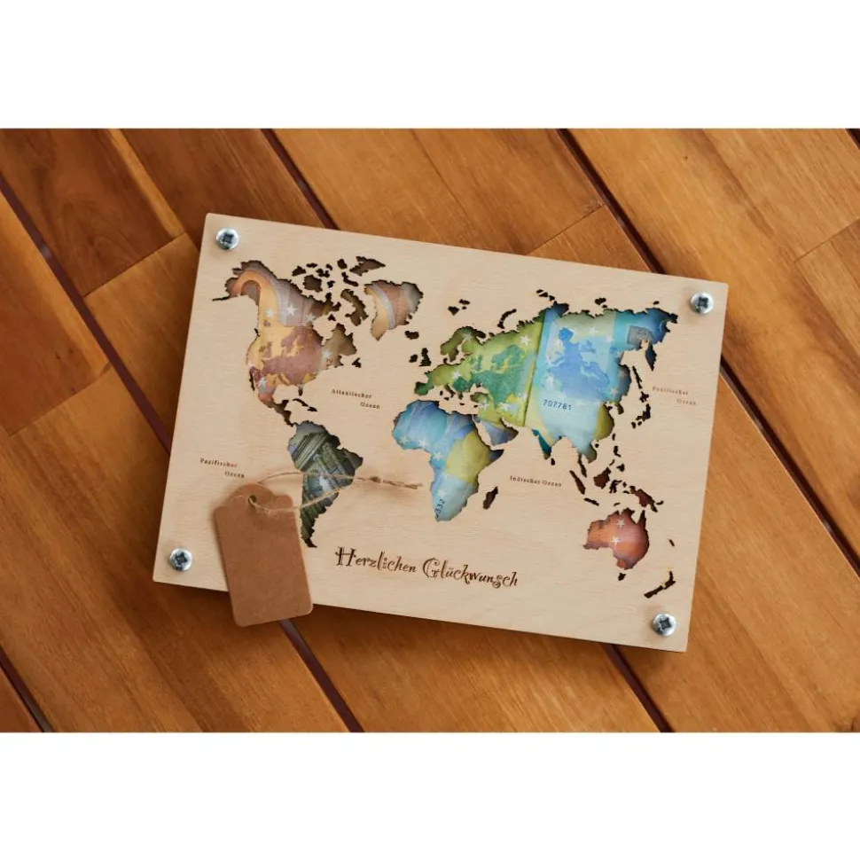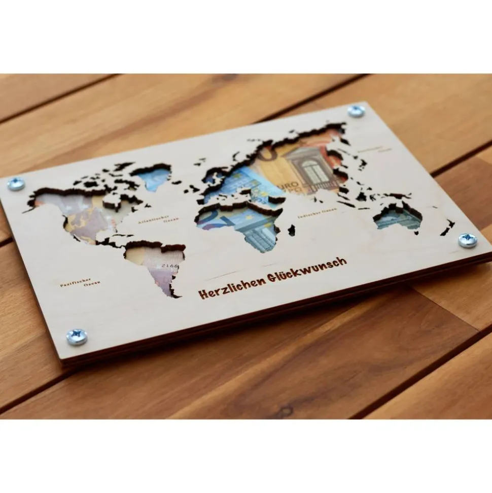 Entdecke unsere Holz Weltkarte, ein einzigartiges Geldgeschenk für besondere Anlässe wie Hochzeiten oder Geburtstage. Diese detailreiche Karte dient nicht nur als originelle Reisekasse für die Hochzeitsreise oder den nächsten Urlaub, sondern auch als stilvolle Dekoration für Zuhause. Gefertigt aus Holz ist diese Weltkarte nicht nur ein praktisches Geschenk, sondern auch ein beeindruckendes Kunstwerk, das die Schönheit der Welt in deinen Wohnraum bringt.