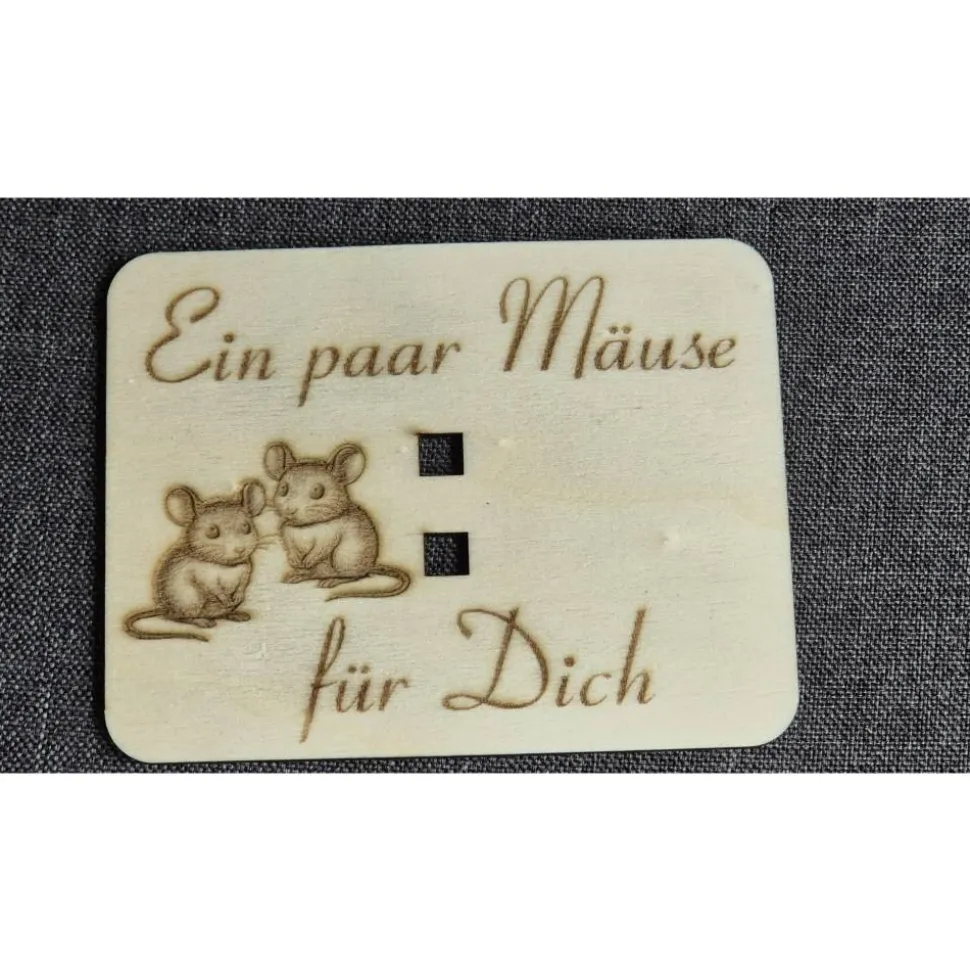 Die Geldkarte aus hochwertigem Bastelholz ist liebevoll mit einer stilvollen Lasergravur „Ein paar Mäuse für Dich“ versehen und eignet sich perfekt als Geschenkidee für Geburtstag, Taufe, Geburt, Schulabschluss, Hochzeit und viele weitere feierliche Momente.