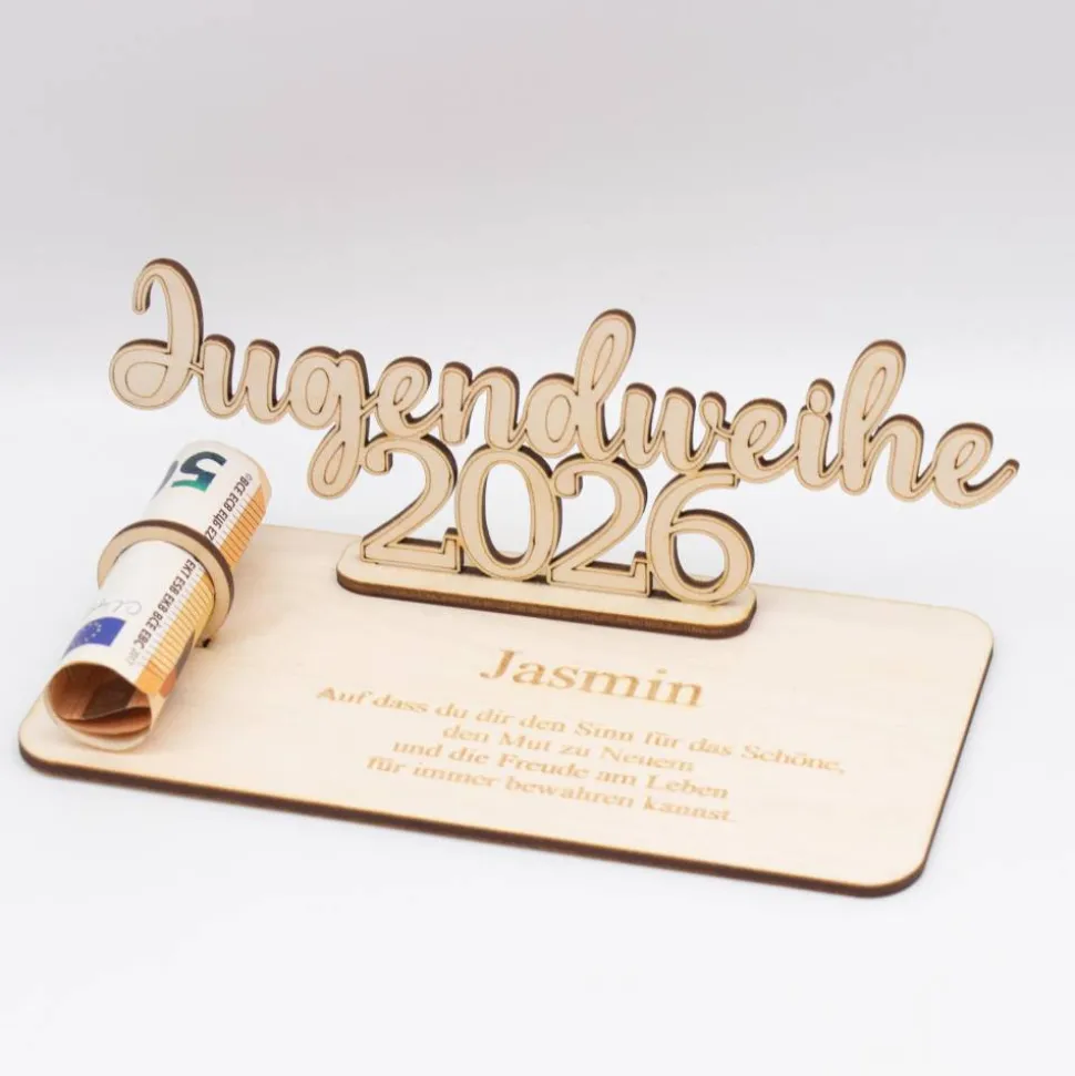 Geldgeschenk Jugendweihe 2026 – personalisiert aus Holz – modernes Jugendweihe Geschenk mit Name