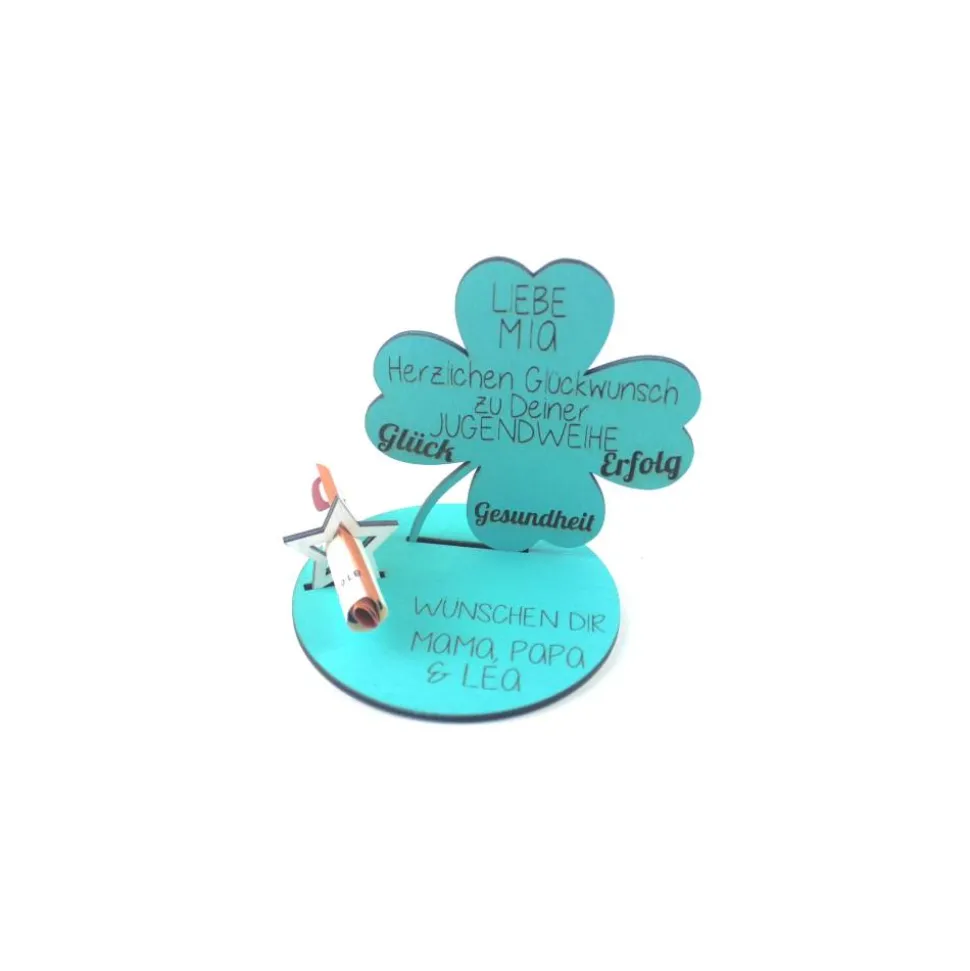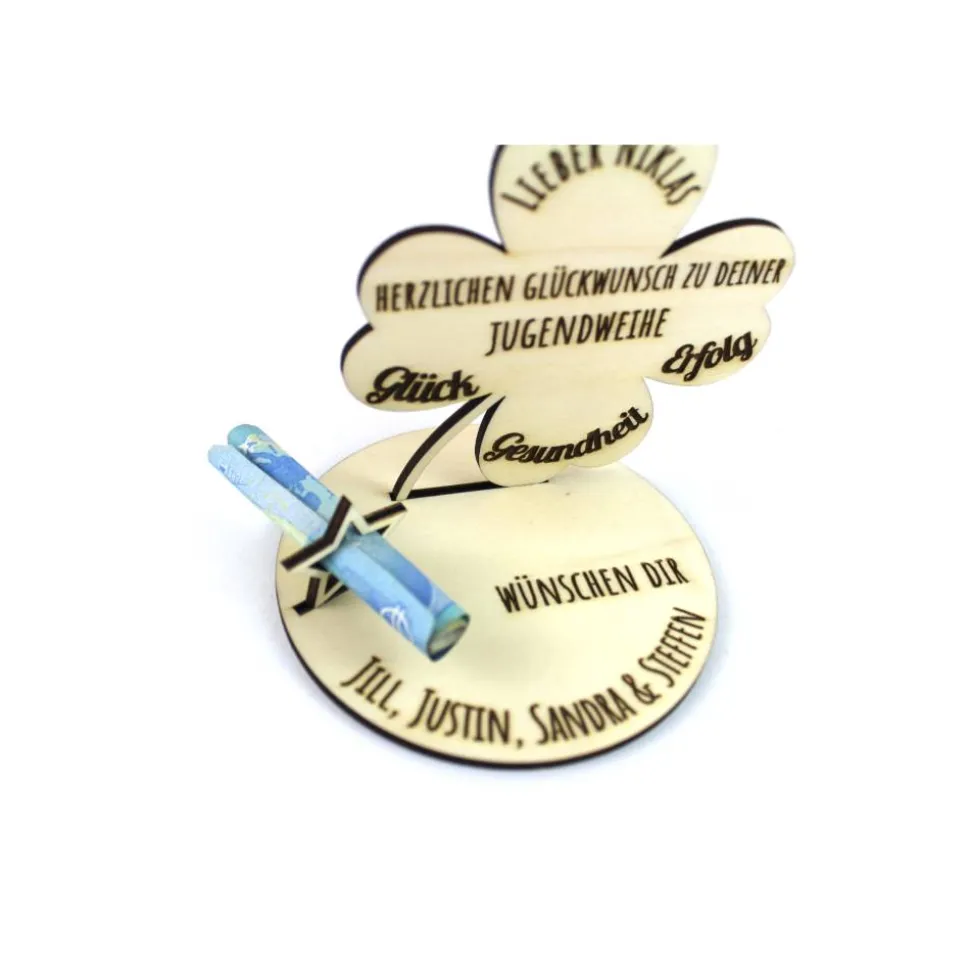 Wir fertigen dir mit deinem Wunschnamen ein individuelles und wunderschönes Geldgeschenk an. Ein absoluter „Hingucker“ am jeweiligen Feiertag und auch in den Jahren danach als Dekoration eine schöne Erinnerung an einen besonderen Tag.