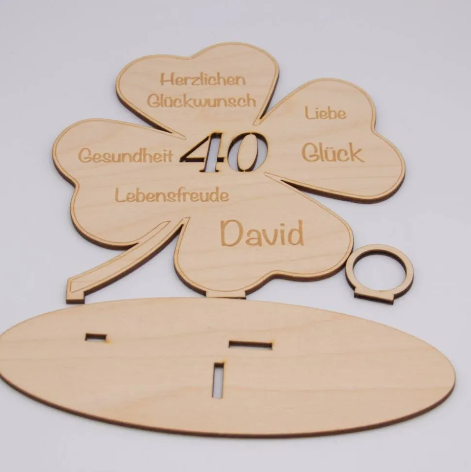 Geldgeschenk Kleeblatt - aus Holz personalisiert