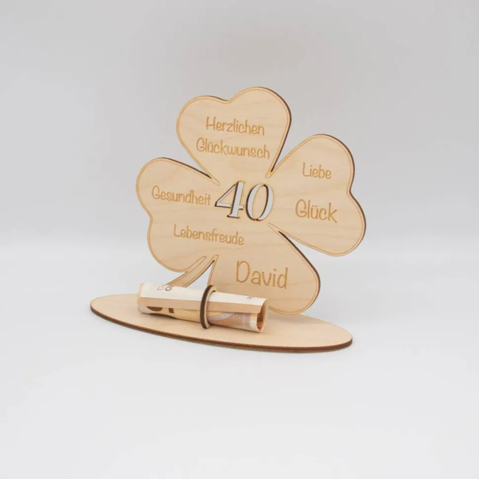 Geldgeschenk Kleeblatt – aus Holz personalisiert