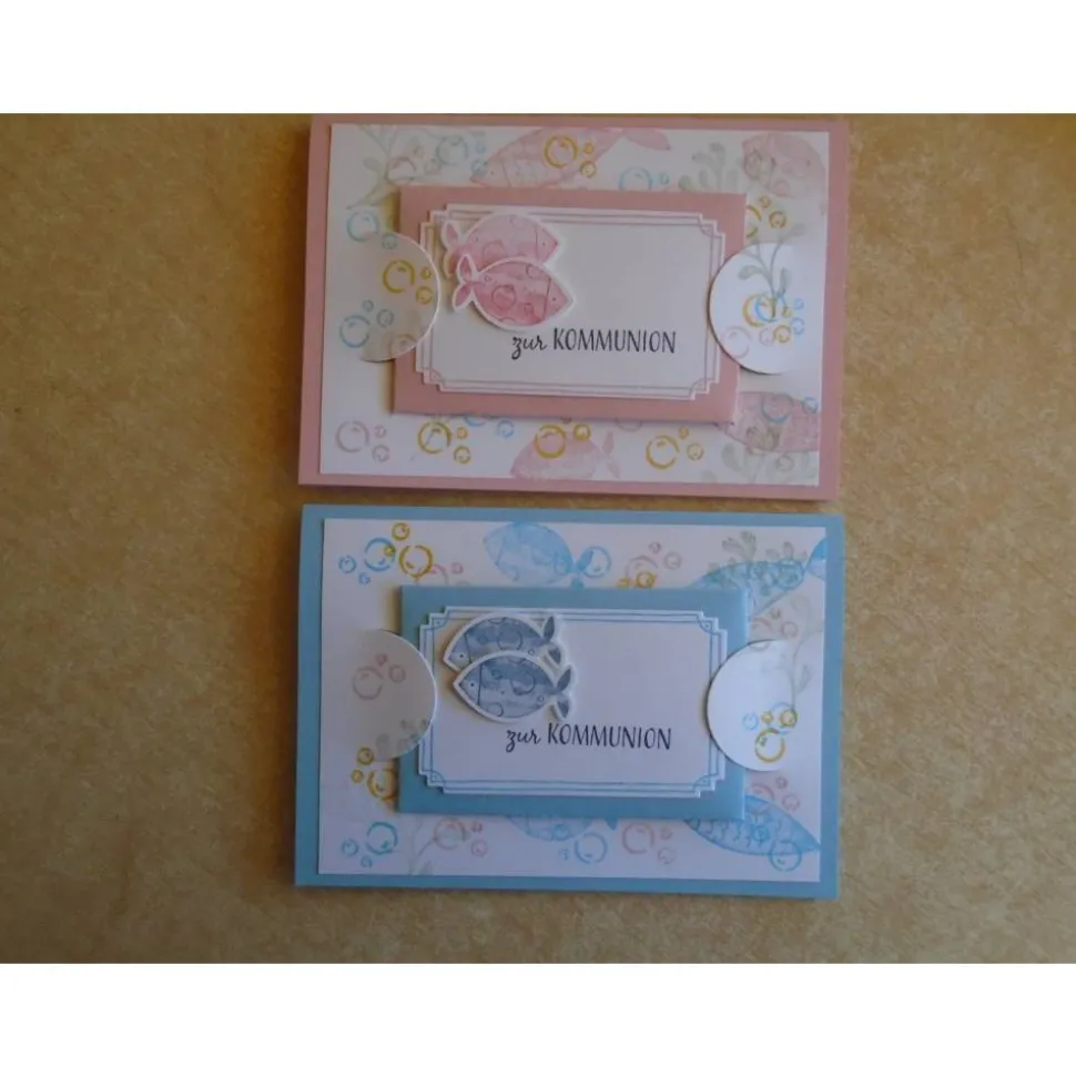 Verziert wurde diese Geldkarte Geldgeschenk zur Kommunion für ein Jungen oder ein Mädchen mit Fische..