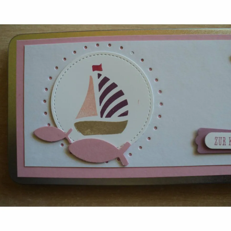 bei diese hübsche Geschenkdose Kommunion schiff gehört noch ein kleine Karte,um was schönes zu schreiben..