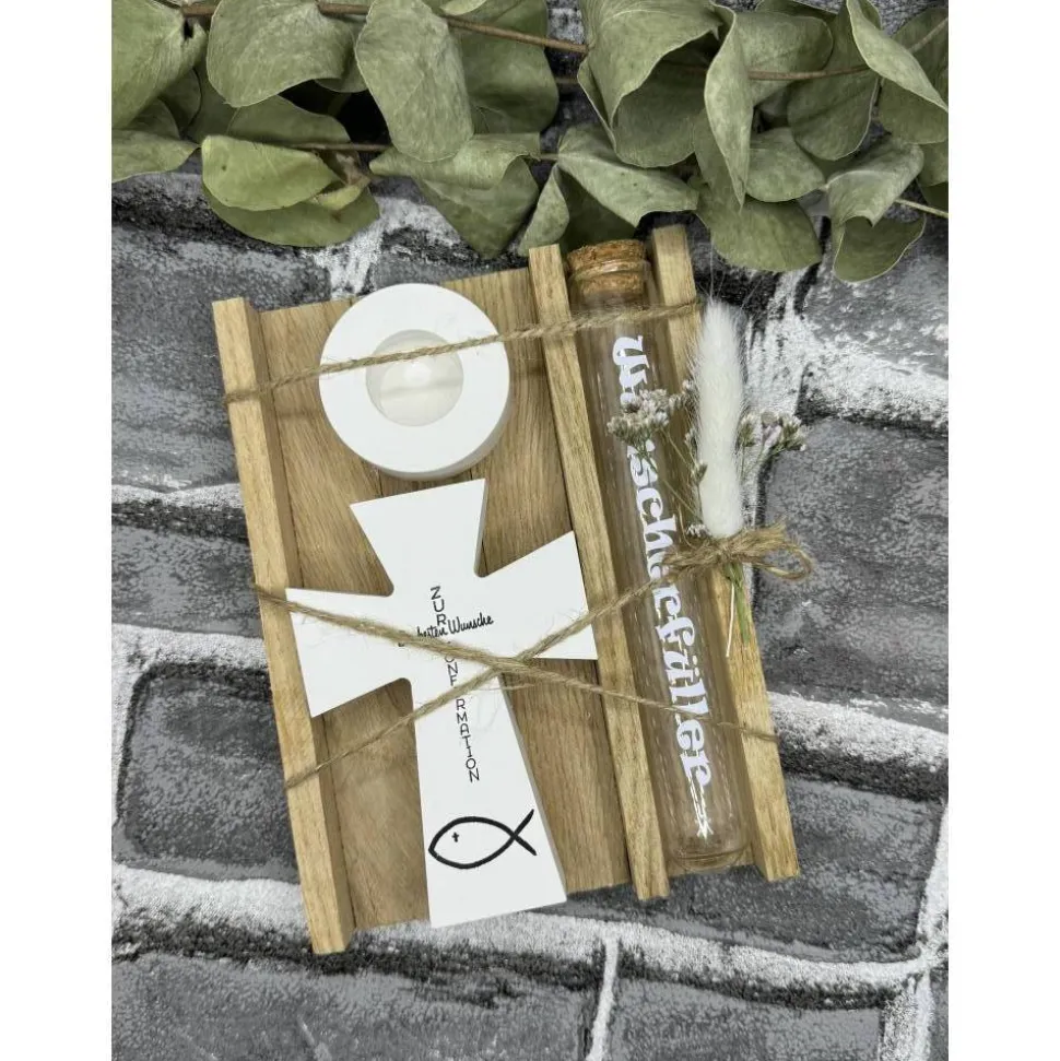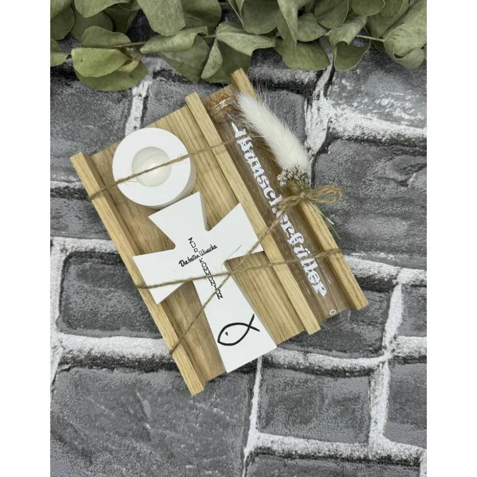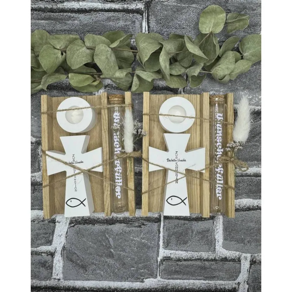 Dieses schöne Set kommt mit einem Reagenzglas, einem Kreuz und einem Kerzenhalter, wo der Wunscherfüller rein kommt.