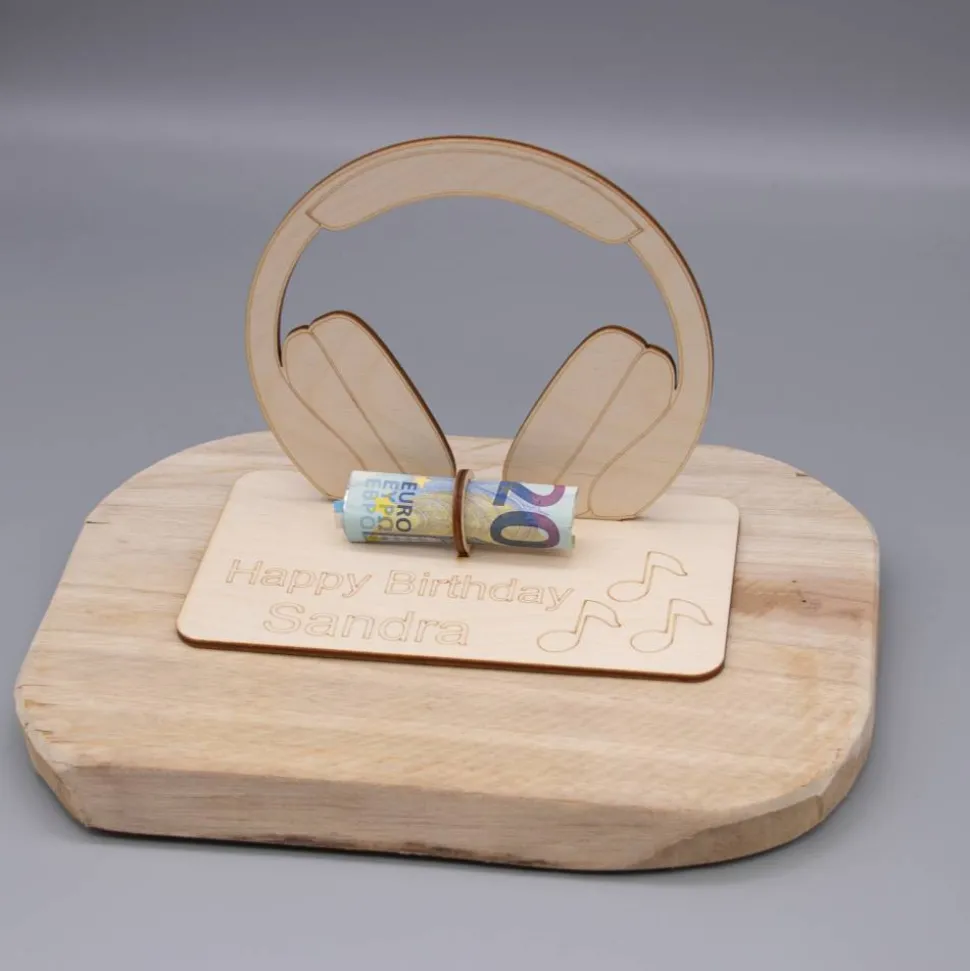 Geldgeschenk Kopfhörer - aus Holz personalisiert