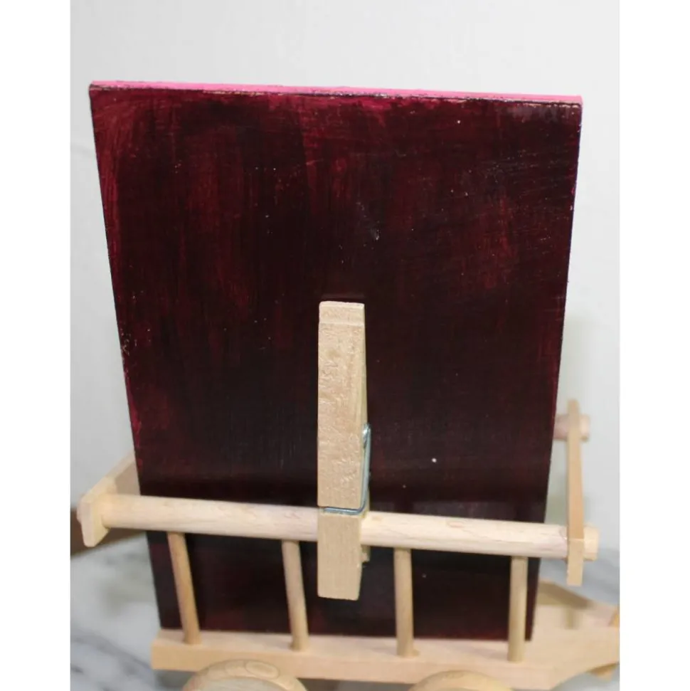 Größe: die Malplatte ist ca. 10 x 15 cm groß, der Leiterwagen ist ca. 12 x 10 cm groß (Außenmaße Wagenoberteil), die Gesamthöhe der kleinen Gestaltung ist ca. 18 cm.